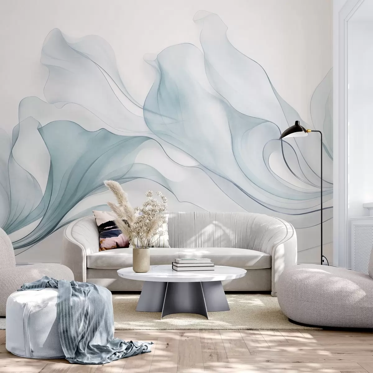 Fototapet En abstrakt, flytande struktur i blå nyanser med fina linjer Nr. w09815v1