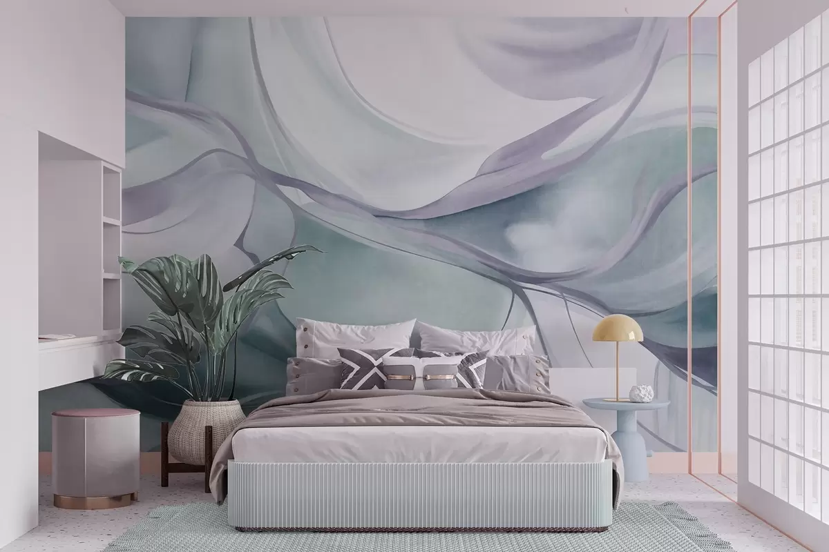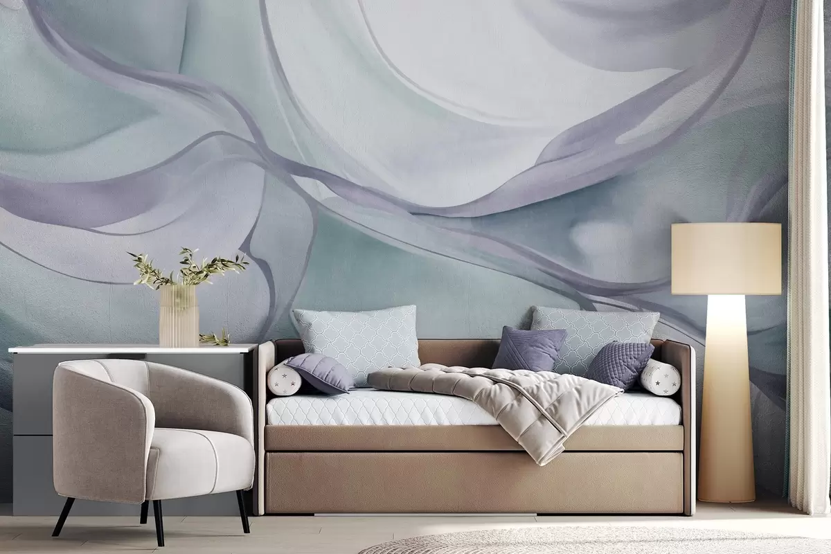 Fototapet Abstrakta, strukturerade, flödande former i blå och grå nyanser med fina linjer Nr. w09818v1