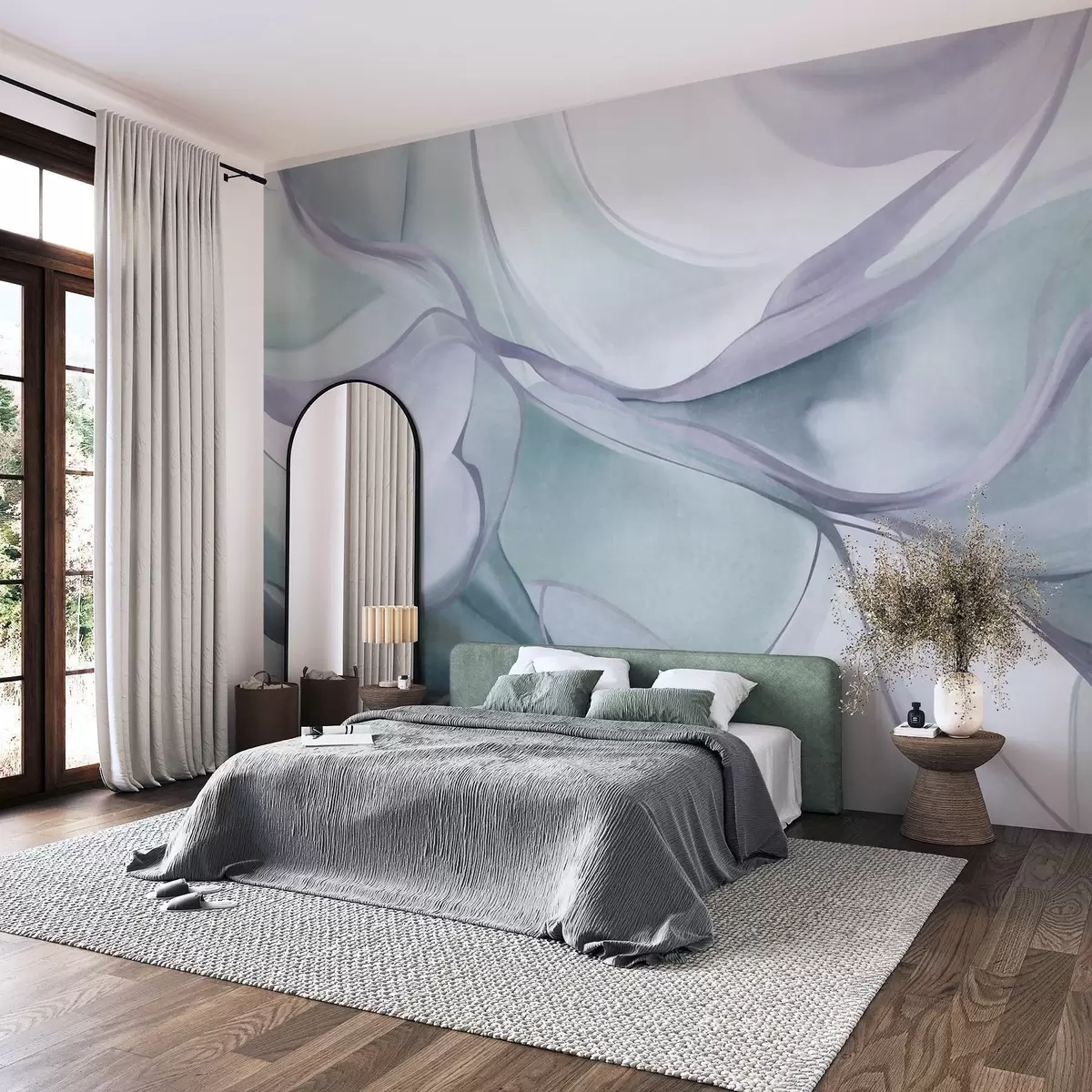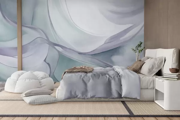 Fototapet Abstrakta, strukturerade, flödande former i blå och grå nyanser med fina linjer Nr. w09818v1