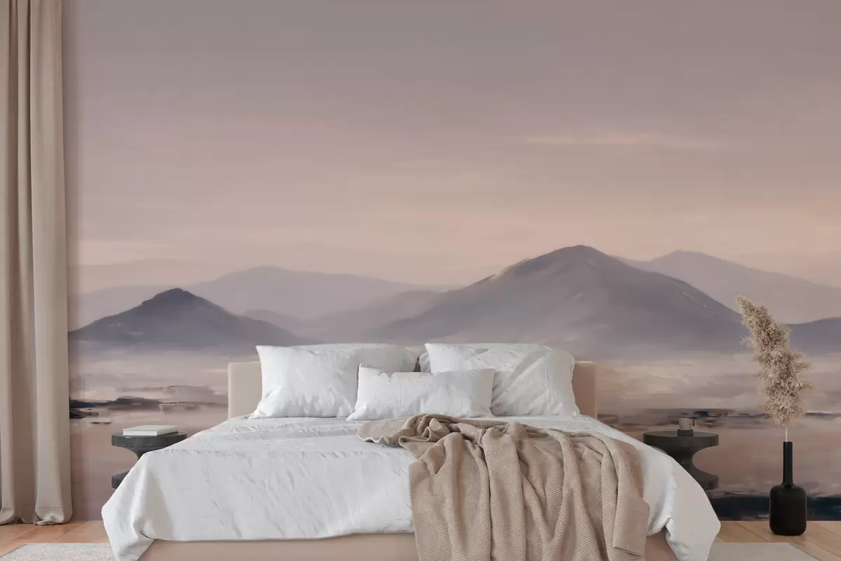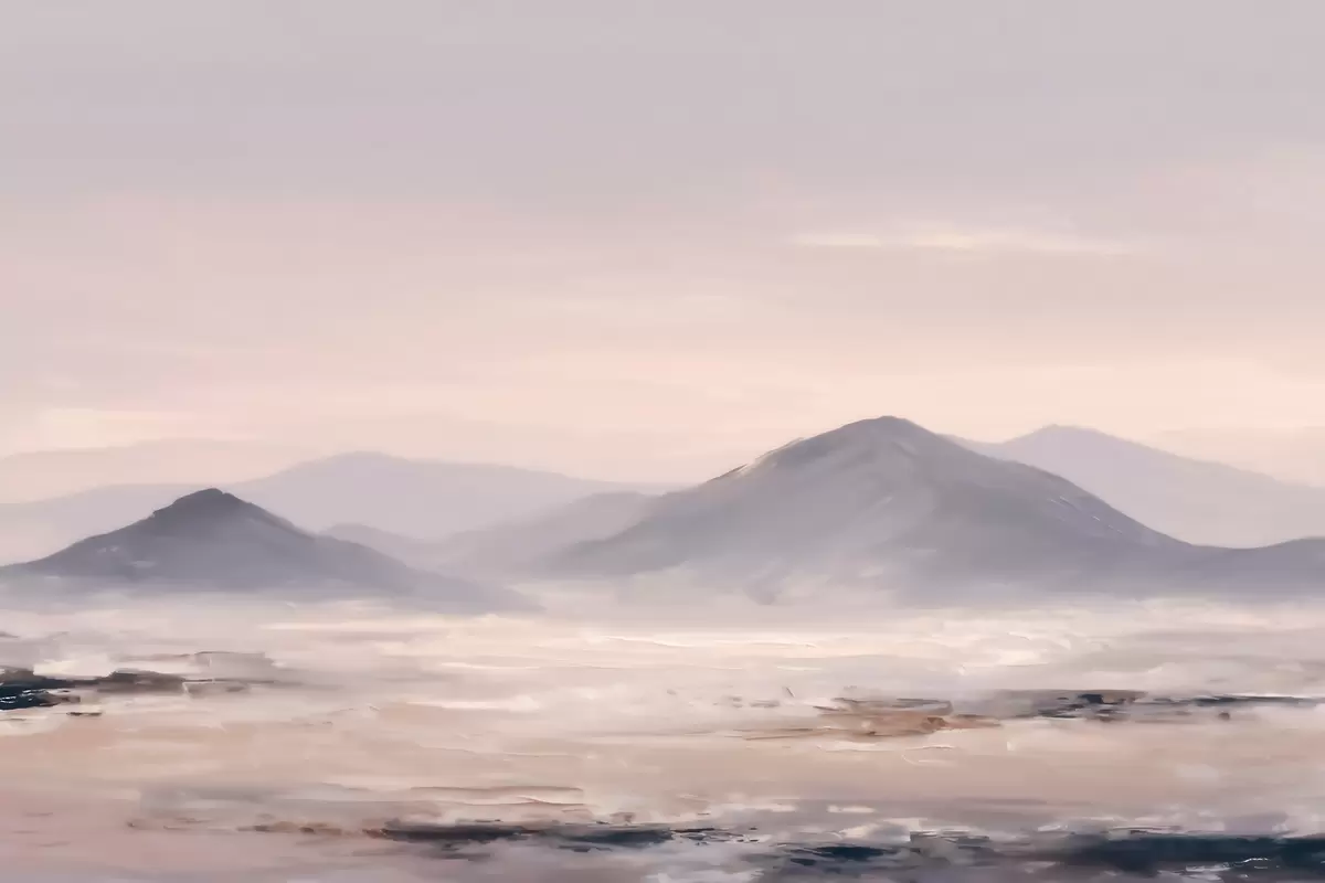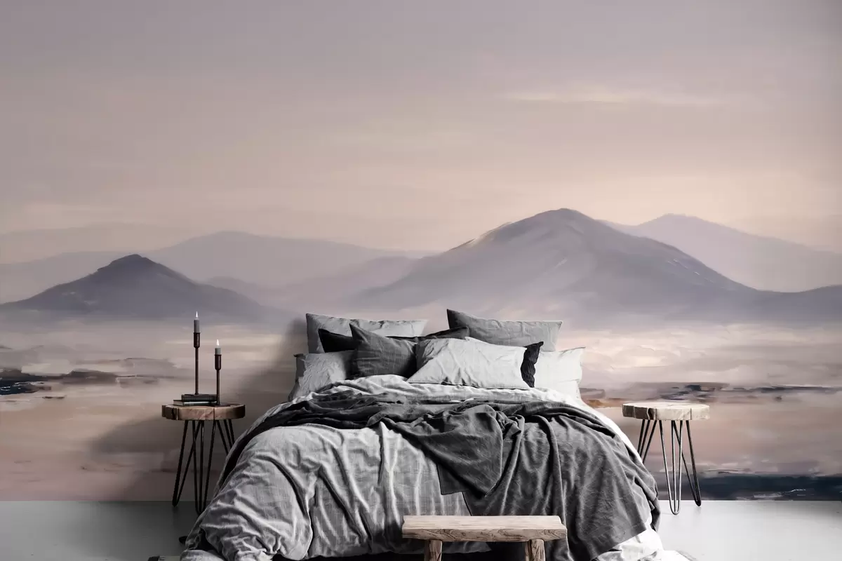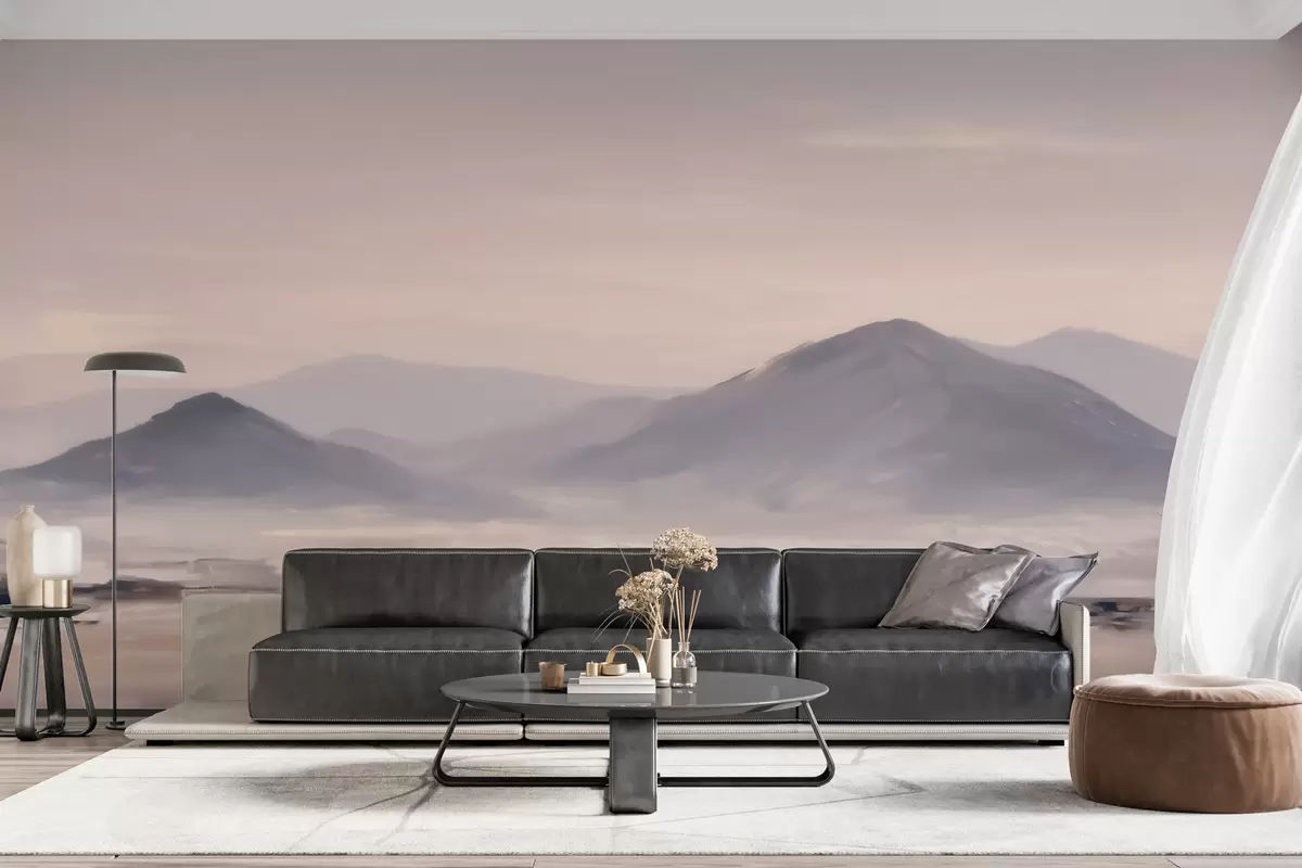 Fototapet Ett dimmigt bergslandskap med mjuka övergångar mellan ljus och luft, med en maskliknande effekt Nr. w09844