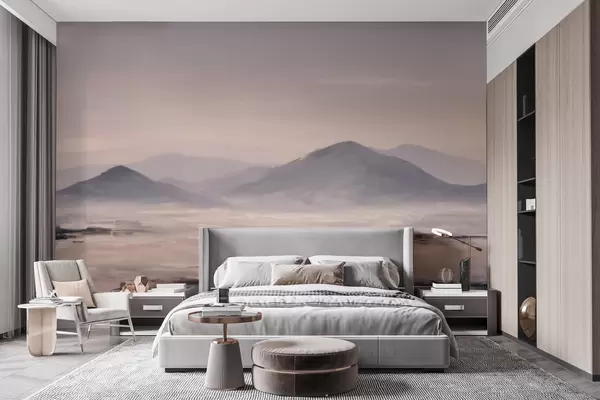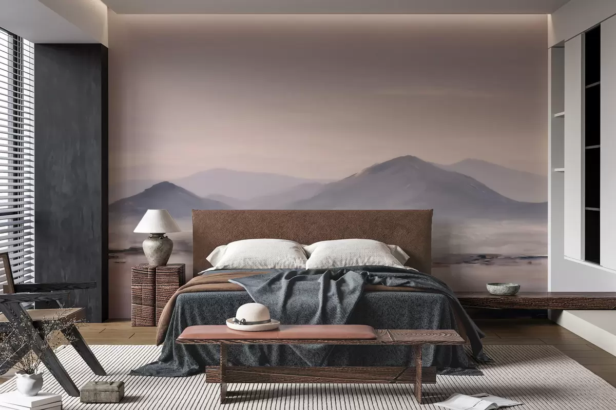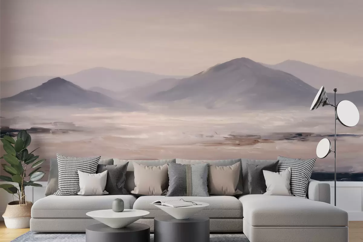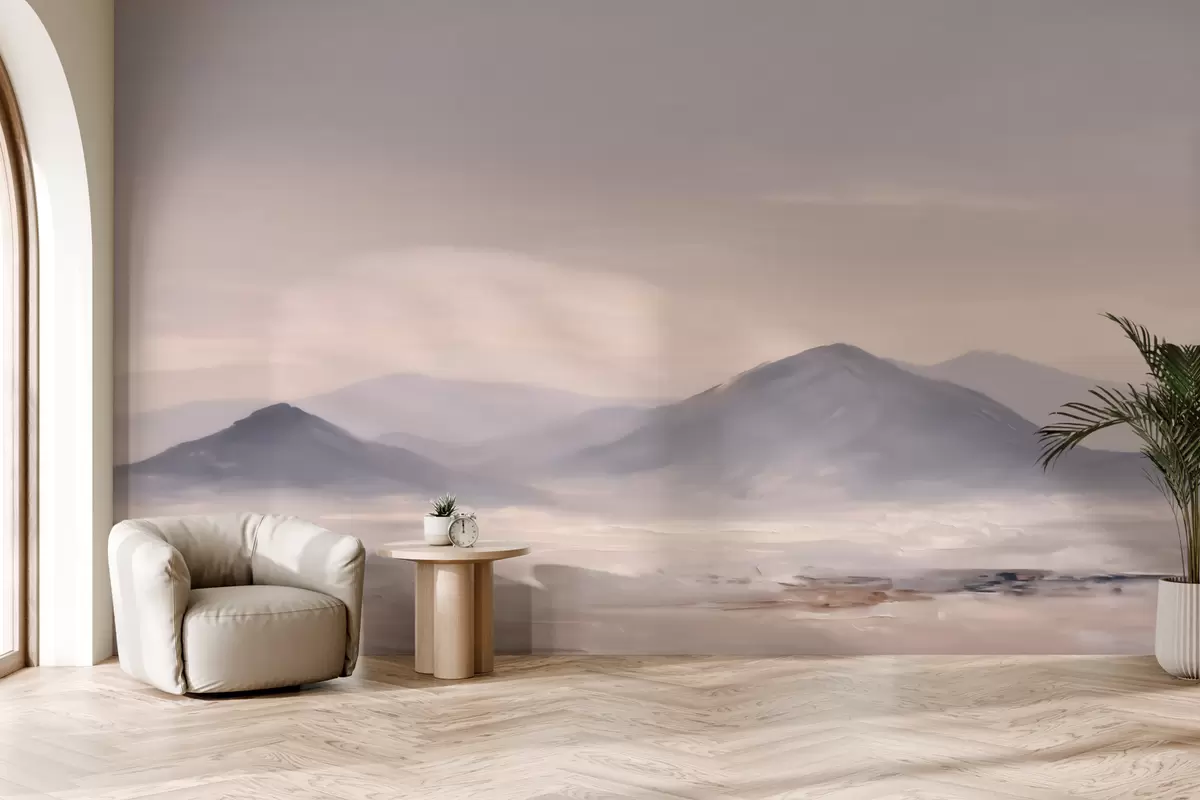 Fototapet Ett dimmigt bergslandskap med mjuka övergångar mellan ljus och luft, med en maskliknande effekt Nr. w09844