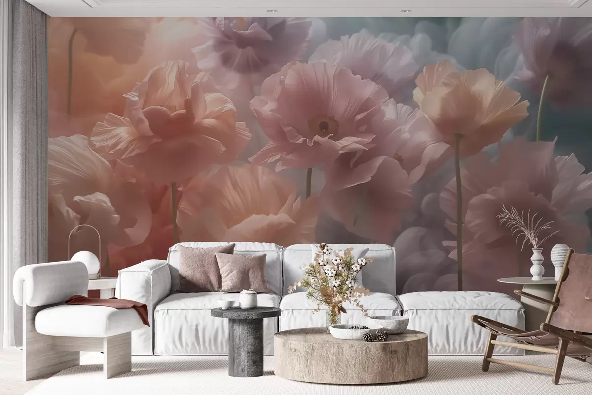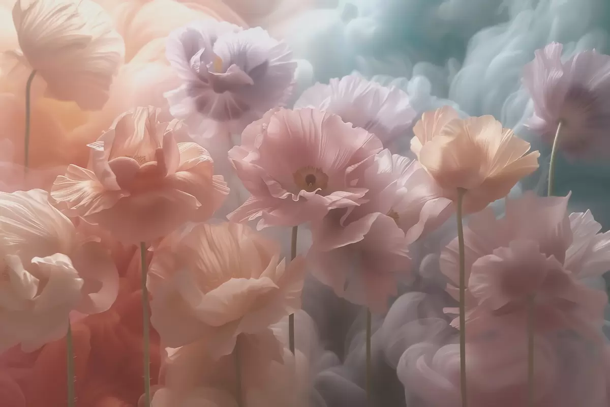 Fototapet Luftiga blommor med genomskinliga kronblad i det mjuka morgonljuset Nr. w09847