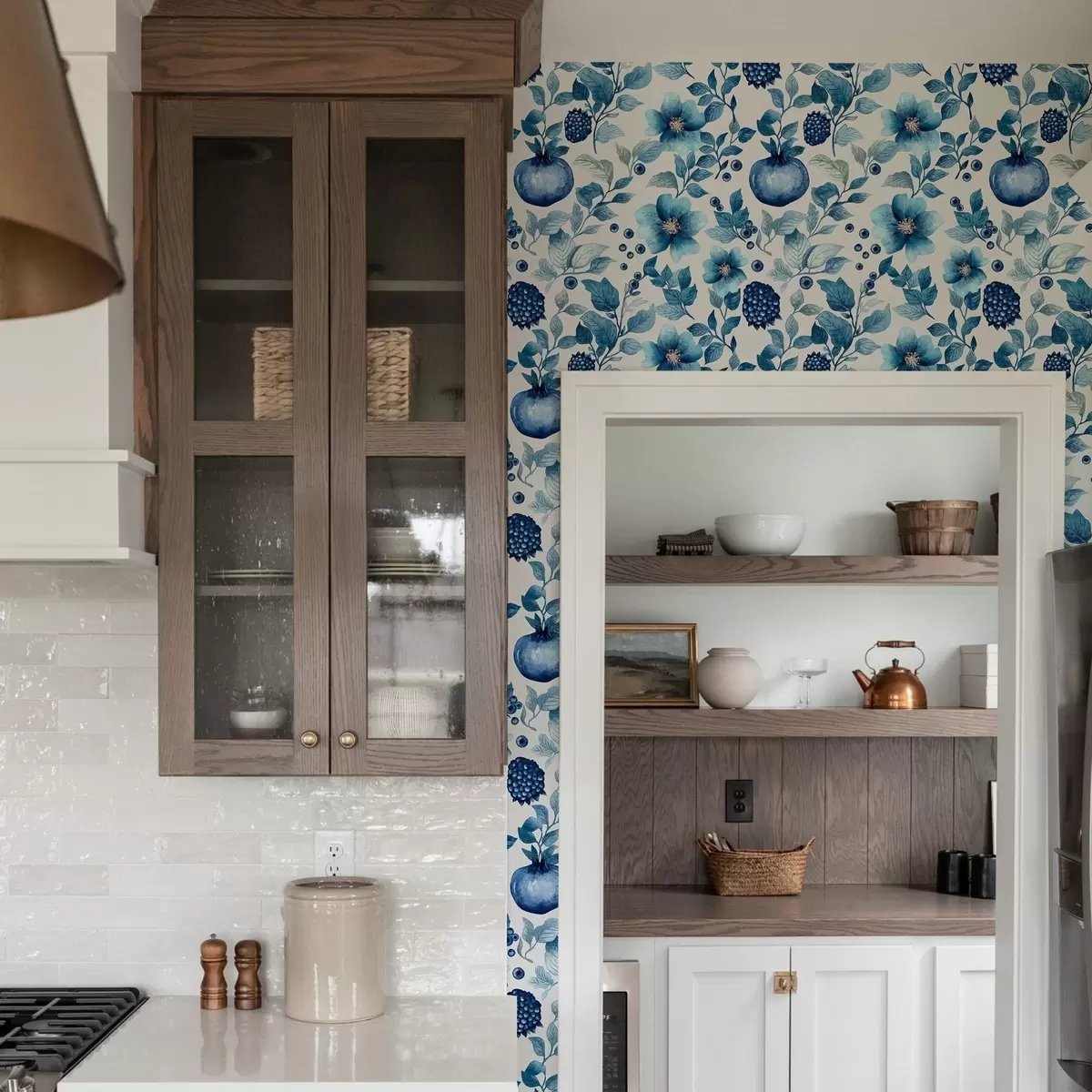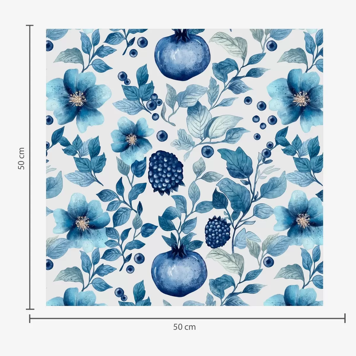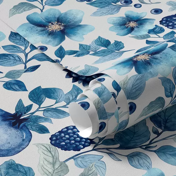 Tapet Blå blommor och granatäpplen Nr. a00002