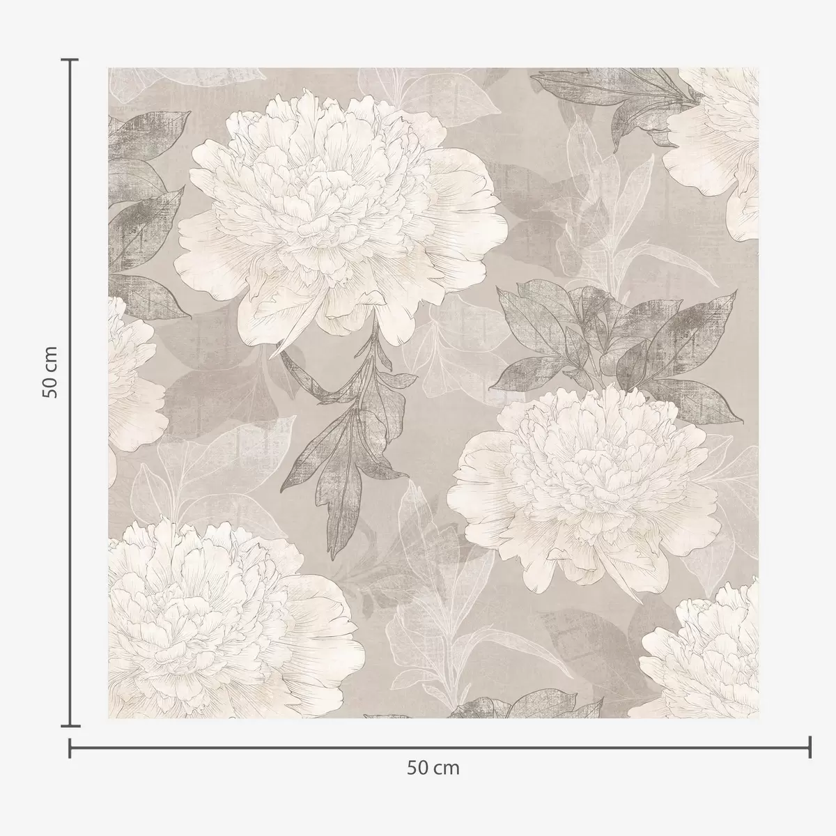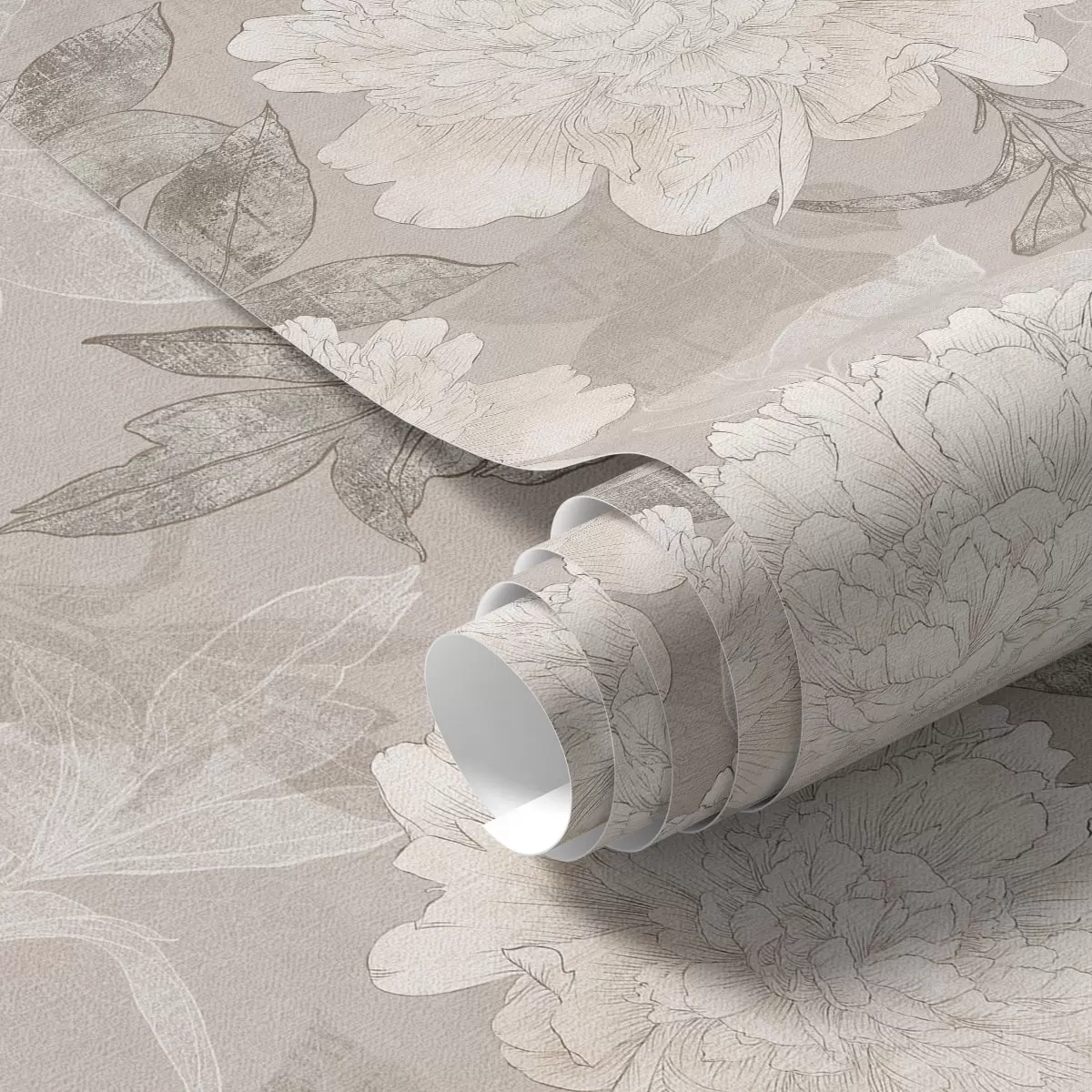 Tapet Ljusa pioner och blad i grungestil Nr. a00005