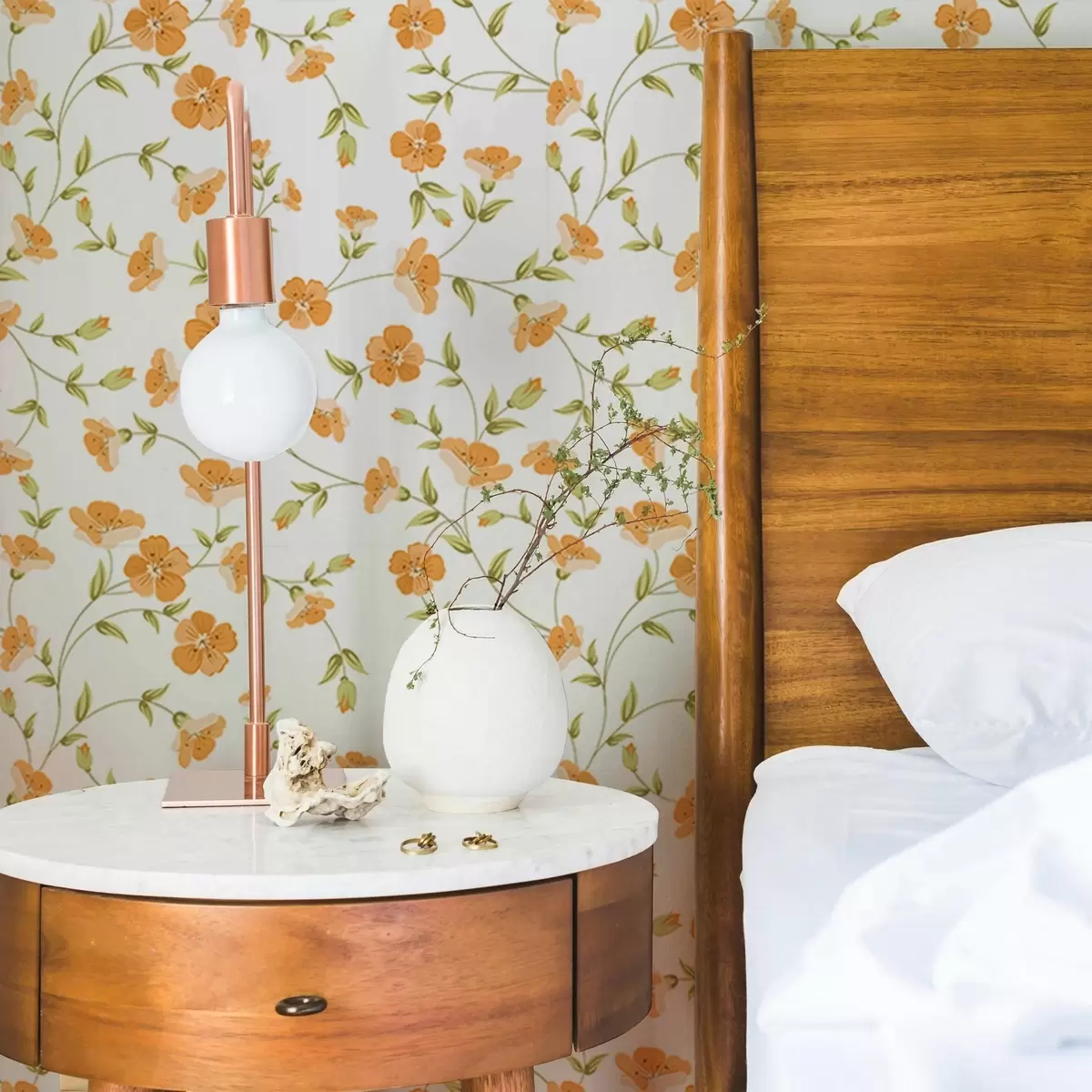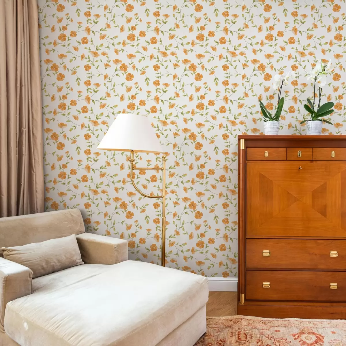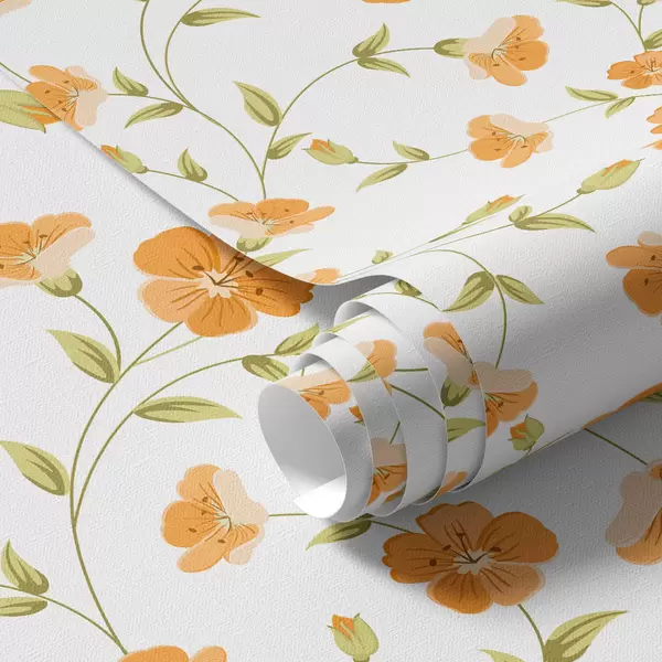 Tapet Orange blommor på vit bakgrund Nr. a00015