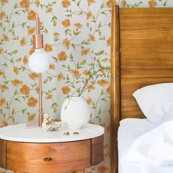 Tapet Orange blommor på vit bakgrund Nr. a00015