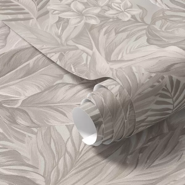Tapet Tropiska blommor och blad i pastellfärger Nr. a00024