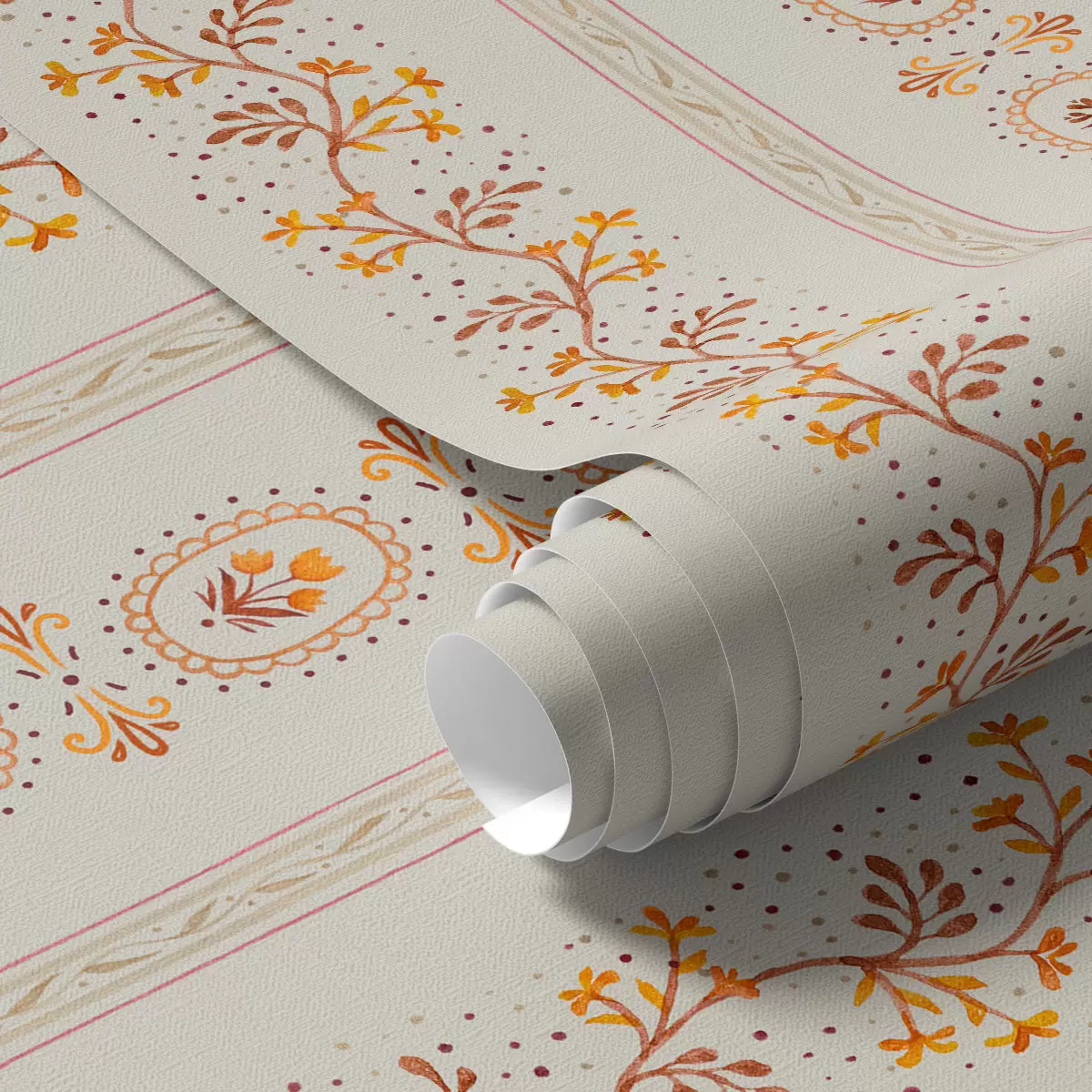 Tapet Delikat geometriskt ornament med blommor och växter Nr. a00031