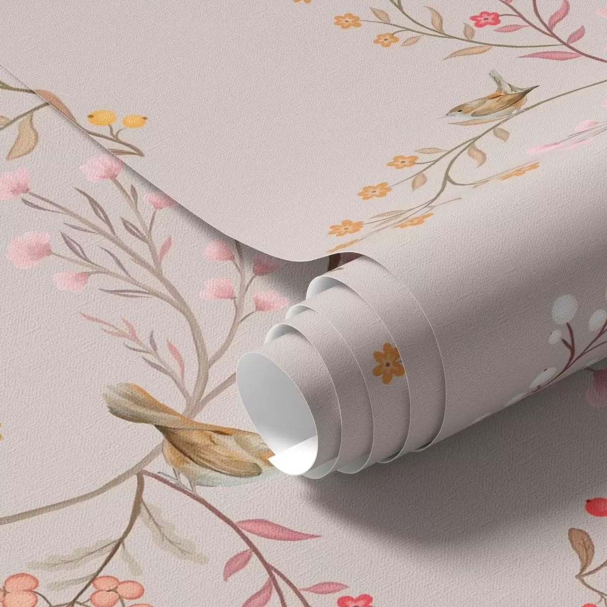 Tapet Delikata blommor och kolibrier på grenar Nr. a00036