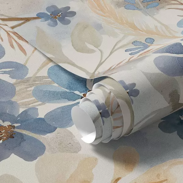 Tapet Delikata blommor och blad i akvarellstil Nr. a00042