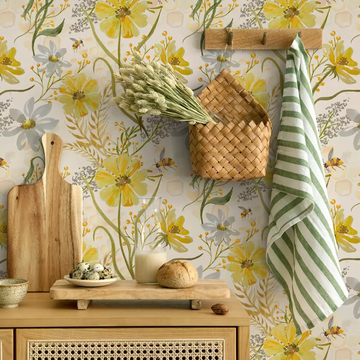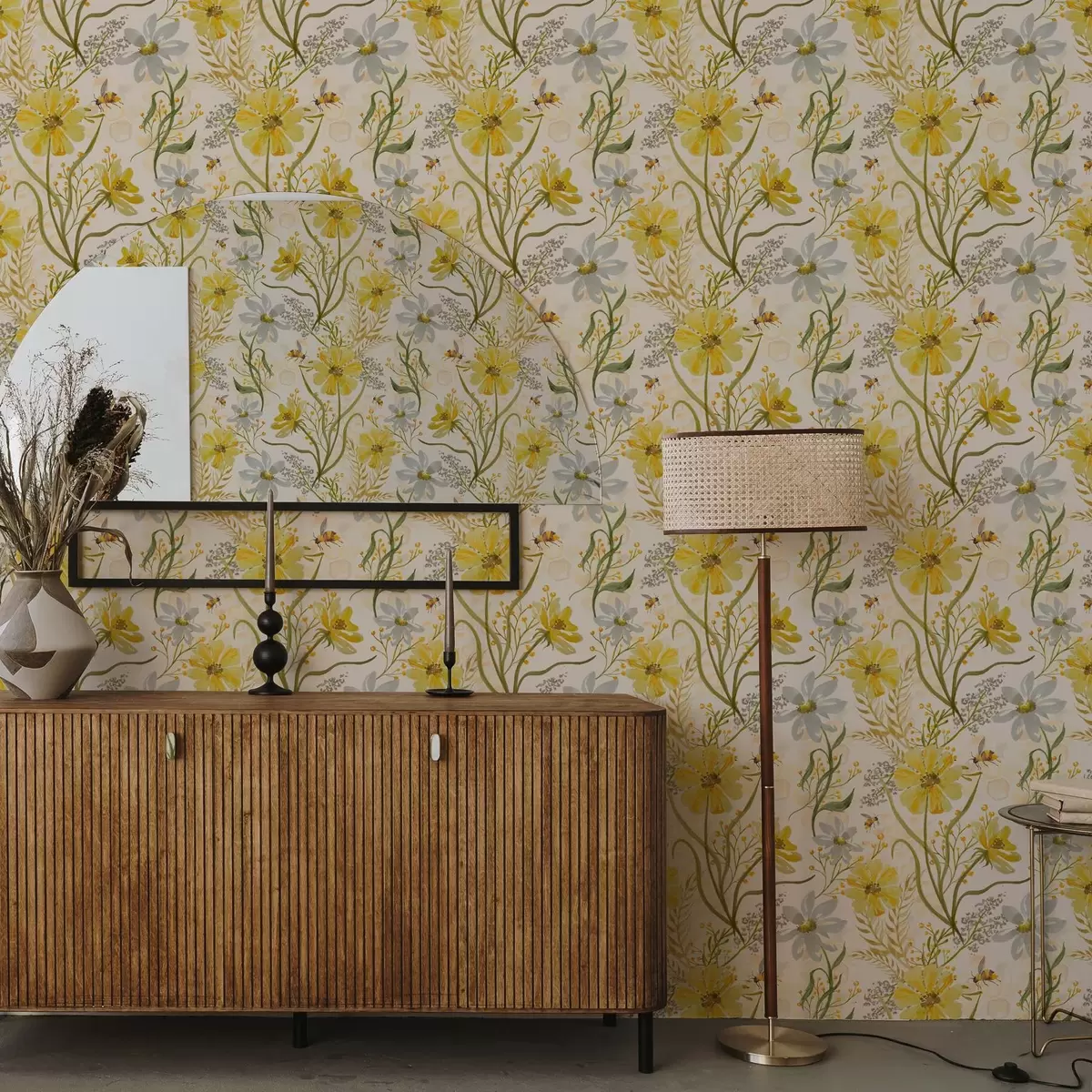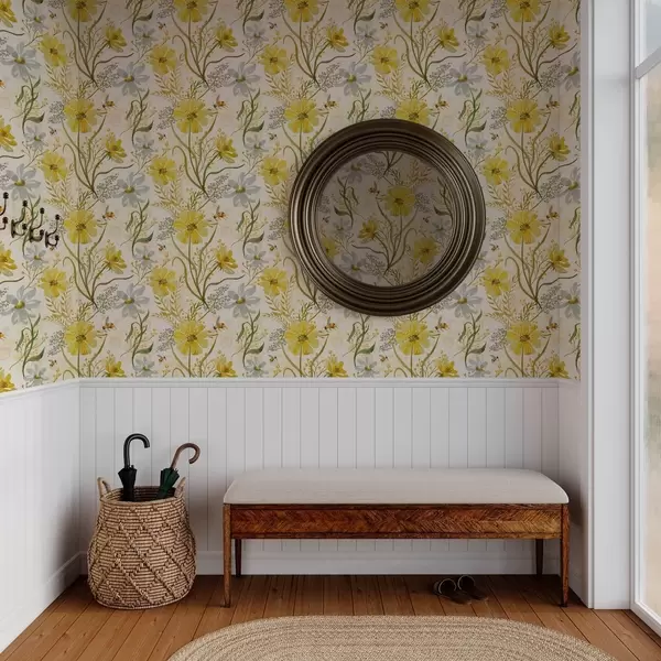 Tapet Ljus blomkomposition i gul färg Nr. a00045