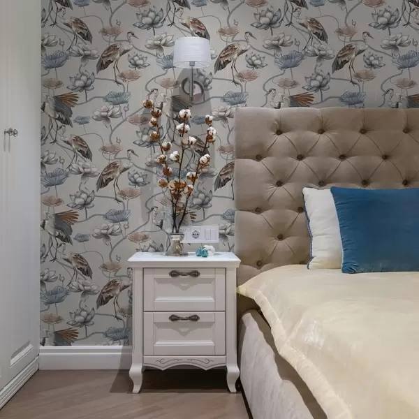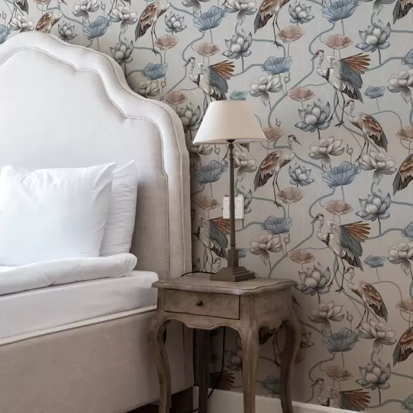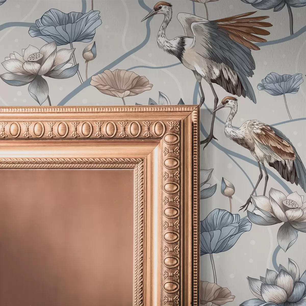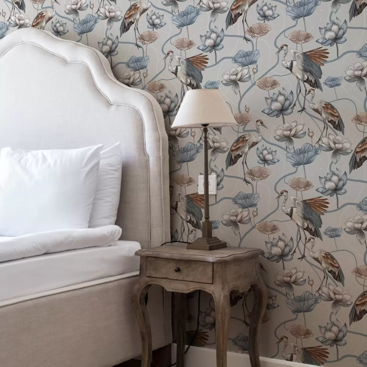 Tapet Komposition med tranor och lotusblommor i pastellfärger Nr. a00064