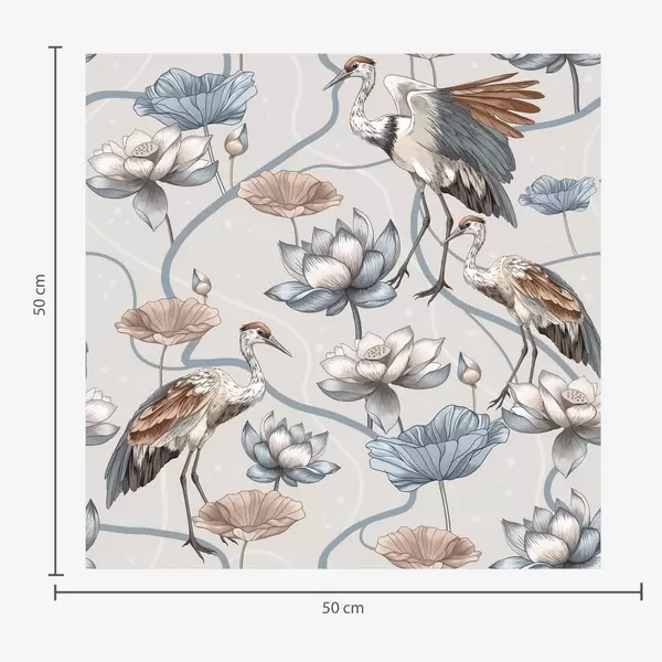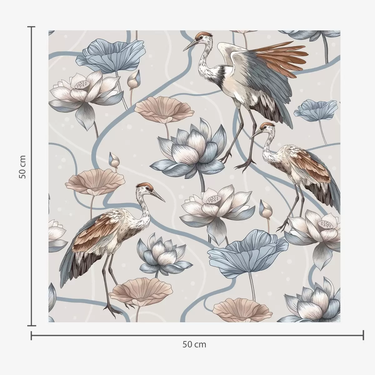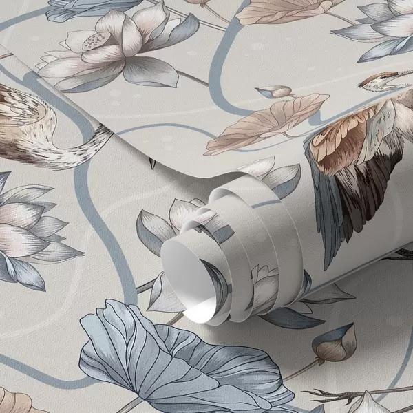 Tapet Komposition med tranor och lotusblommor i pastellfärger Nr. a00064