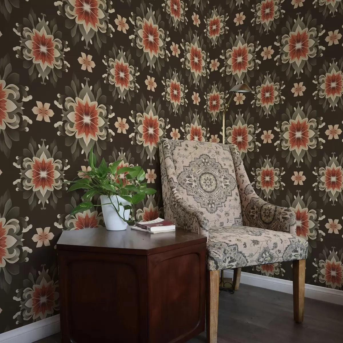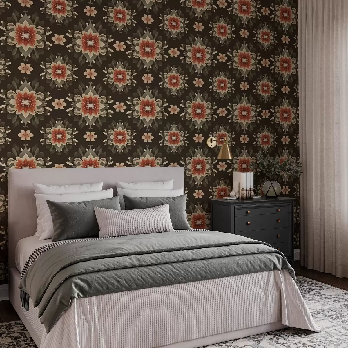 Tapet Abstrakt blommönster på mörk bakgrund Nr. a00069