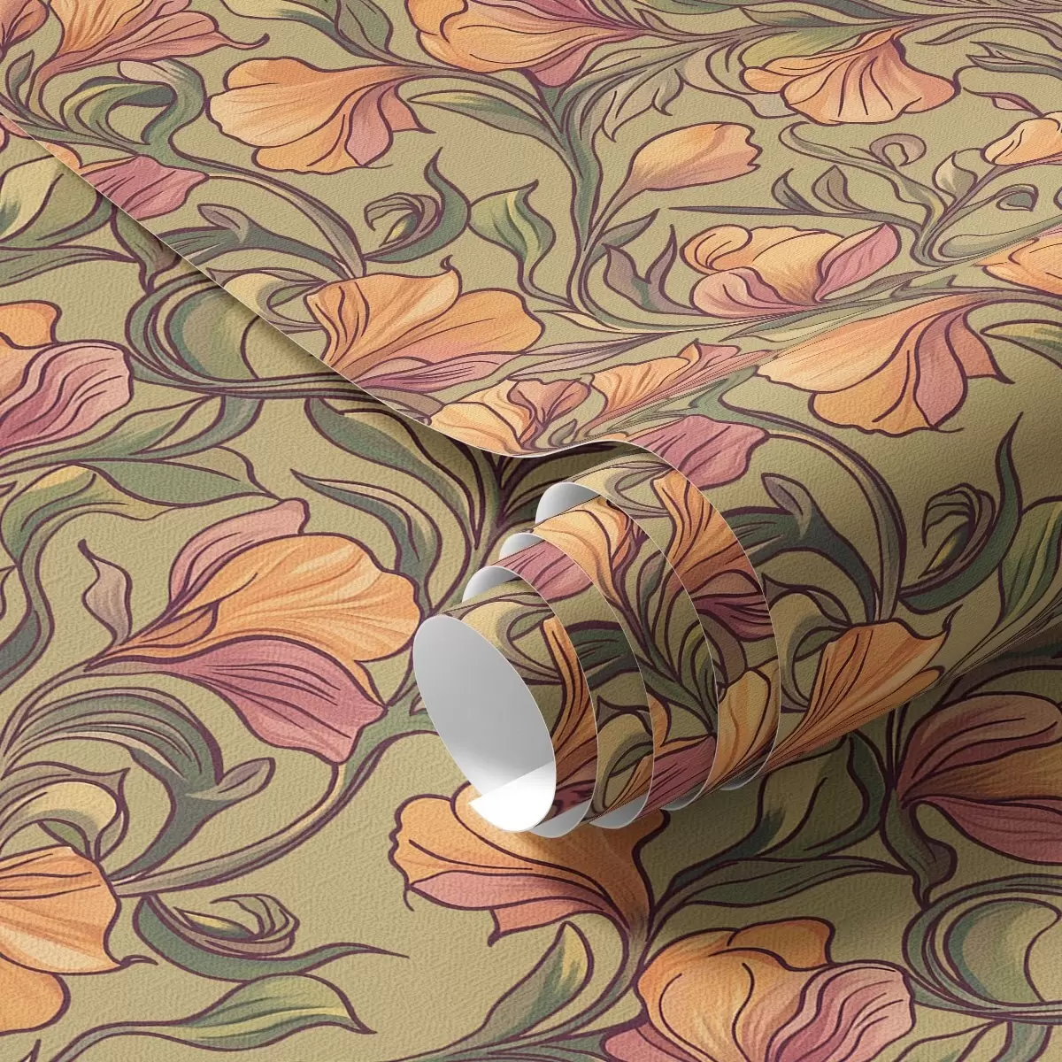 Tapet Ljusa vridna stjälkar med blad och blommor Nr. a00074