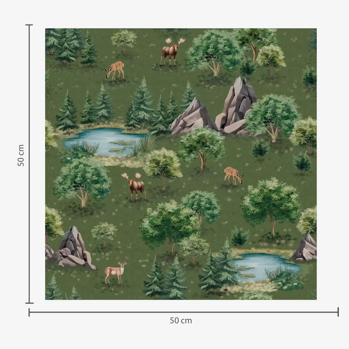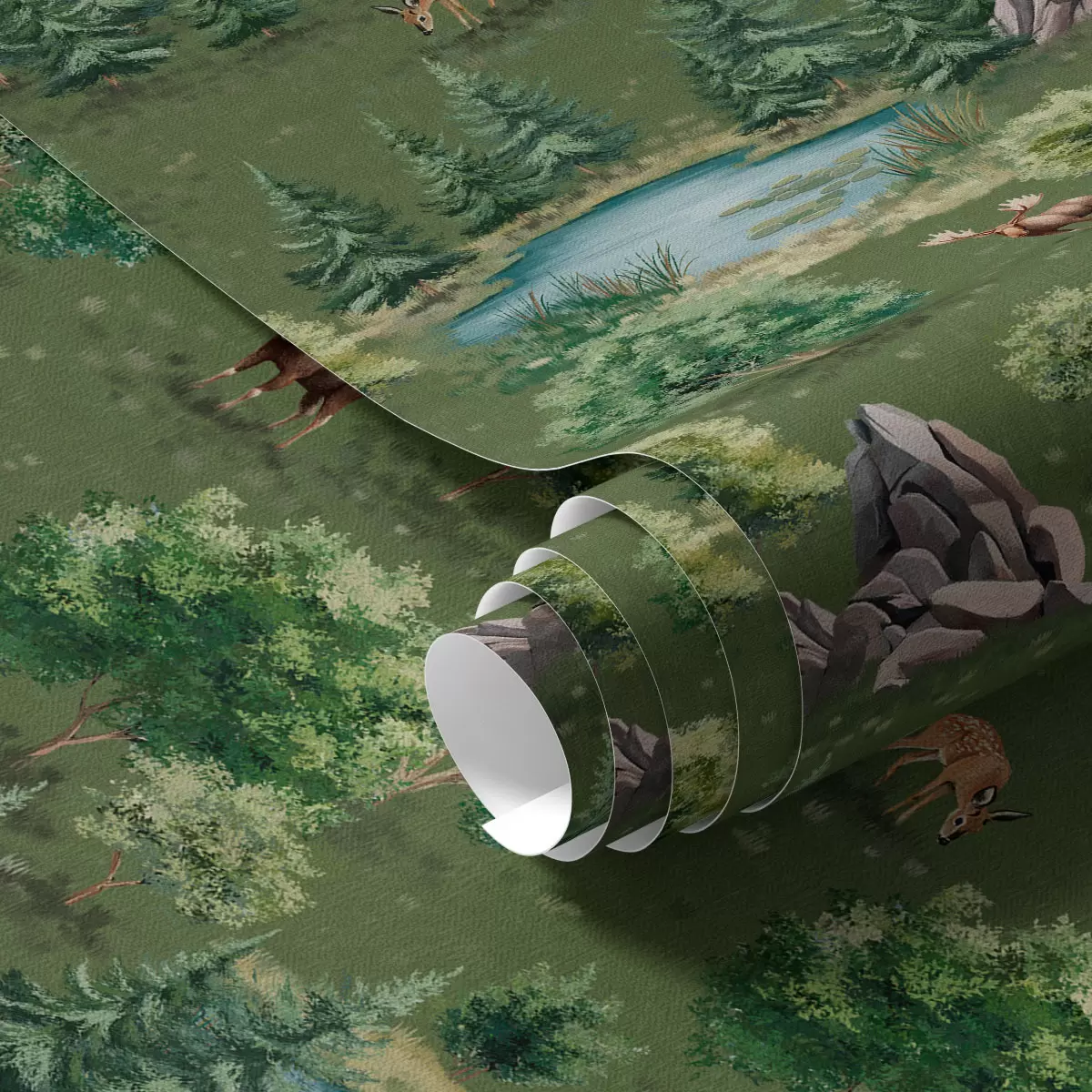 Tapet Hjort vid sjön med träd och stenar Nr. a00086