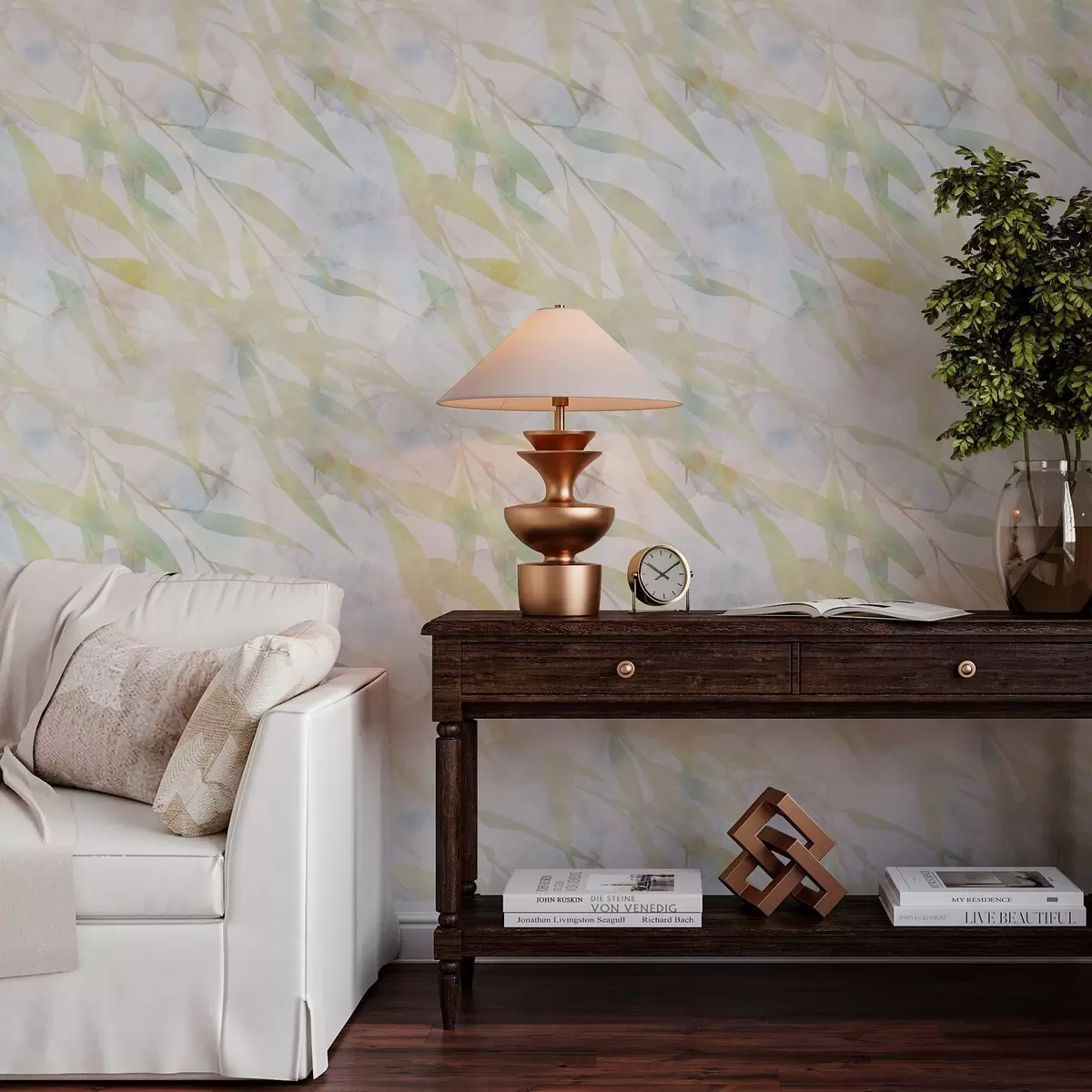Tapet Gulgröna grenar med löv i vinden Nr. a00097