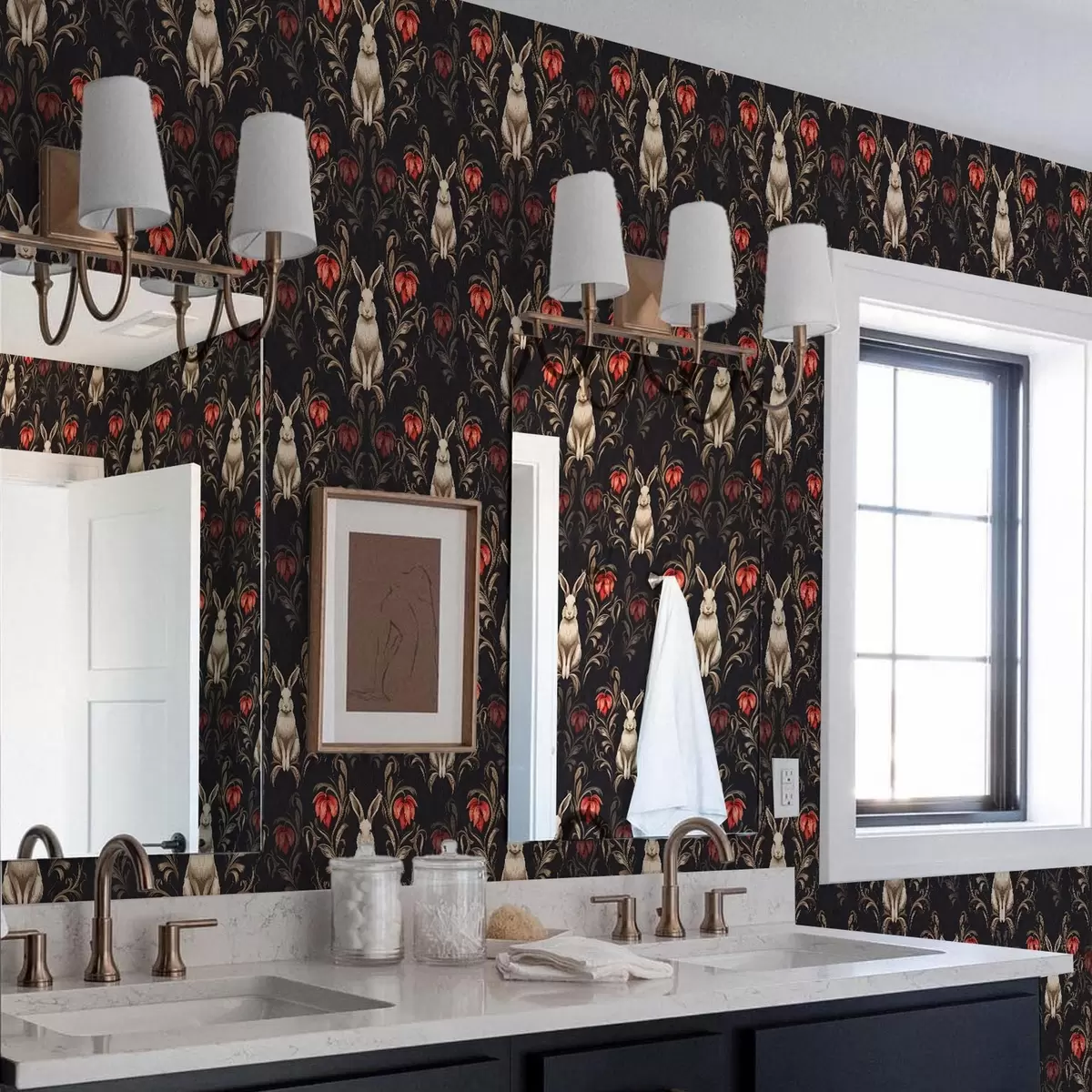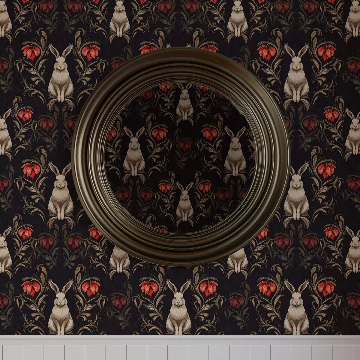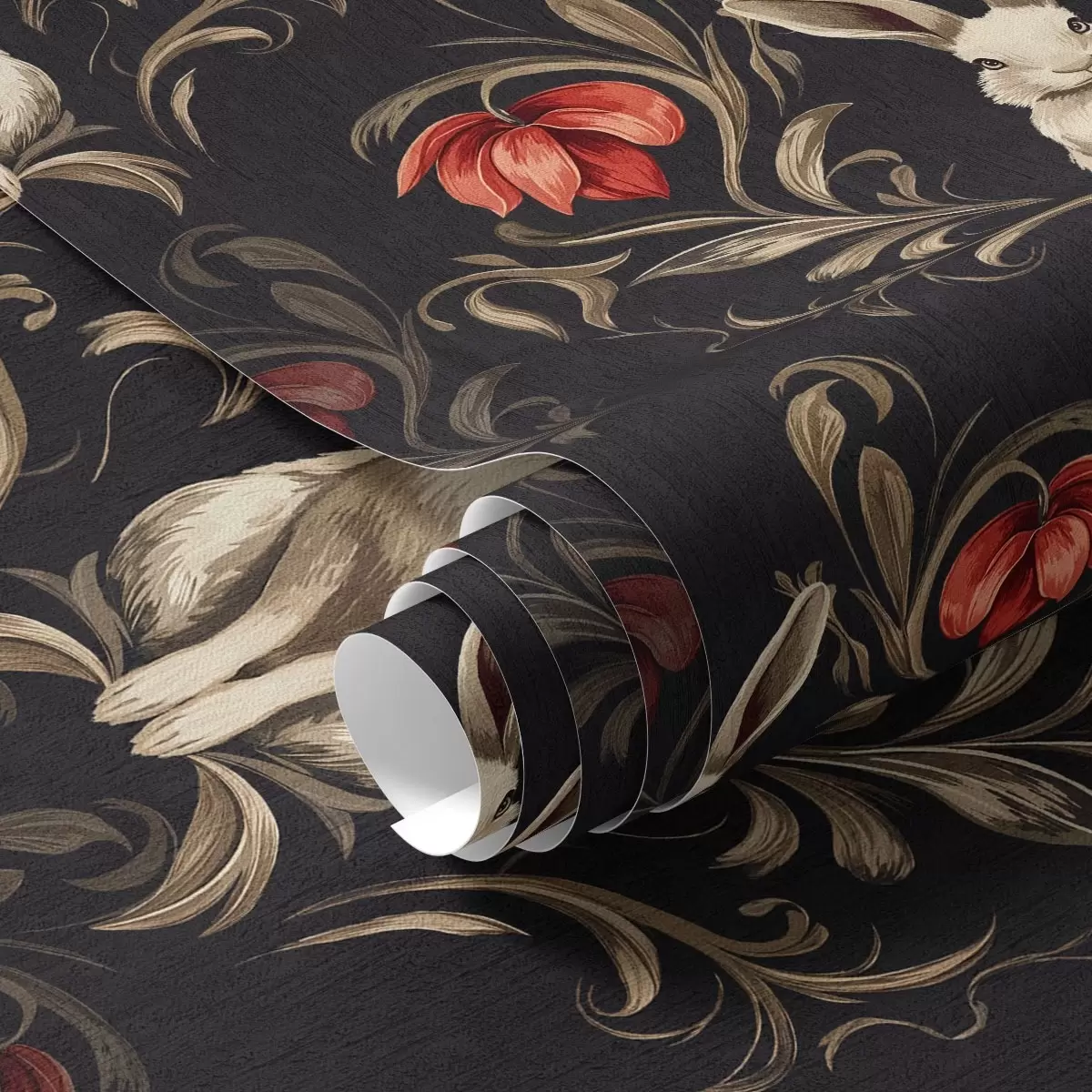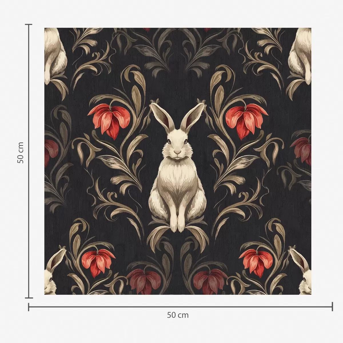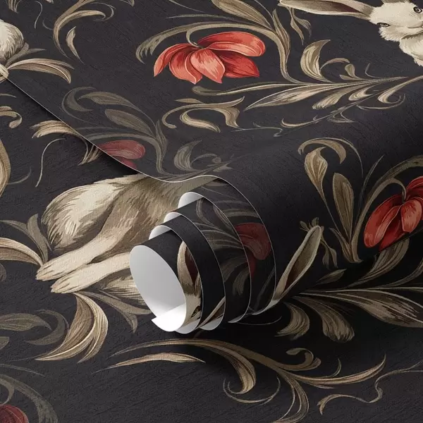 Tapet Hare och röda blommor på en mörk bakgrund Nr. a00102