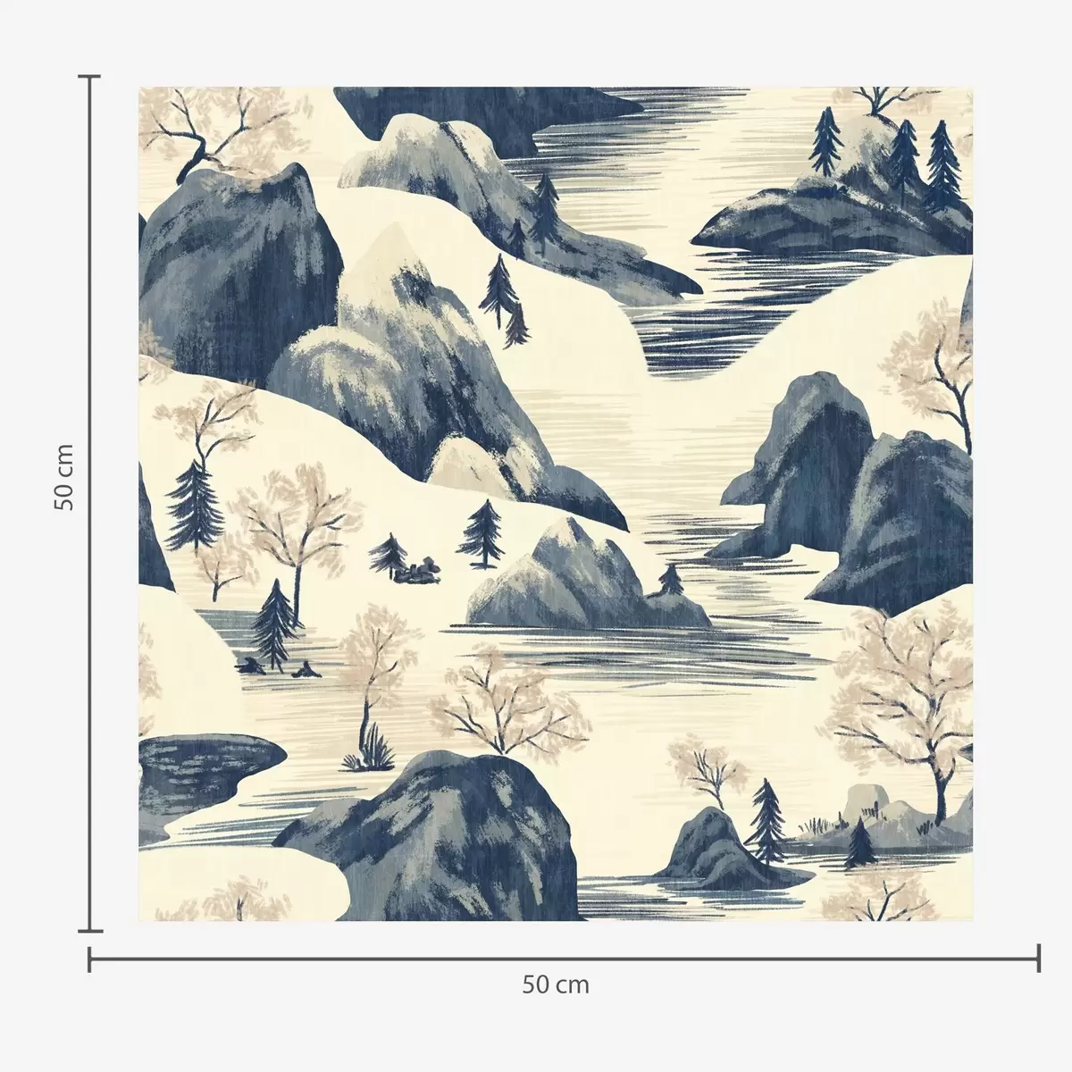 Tapet Vinterlandskap med bergsflod i blå nyanser Nr. a00103