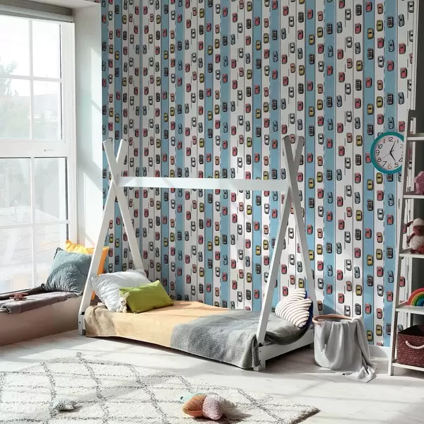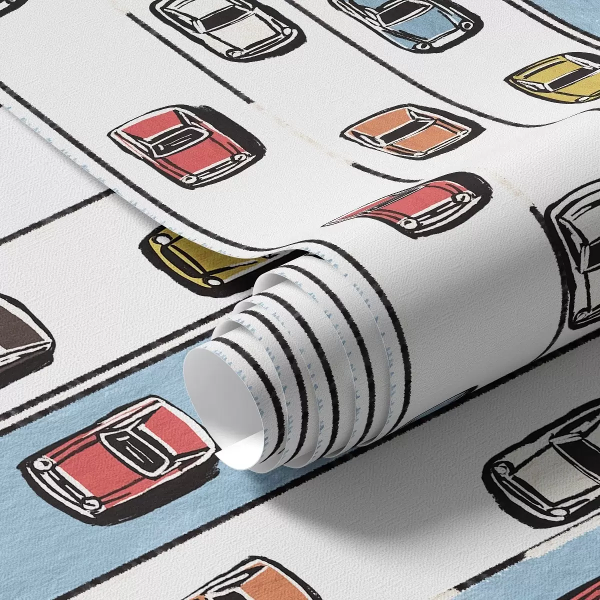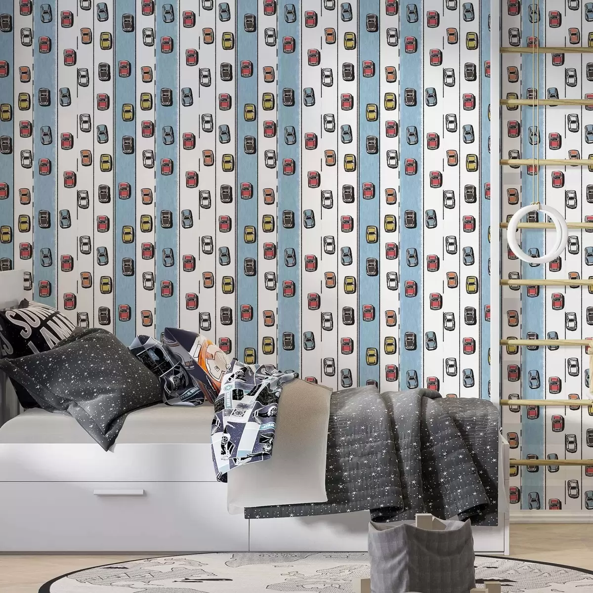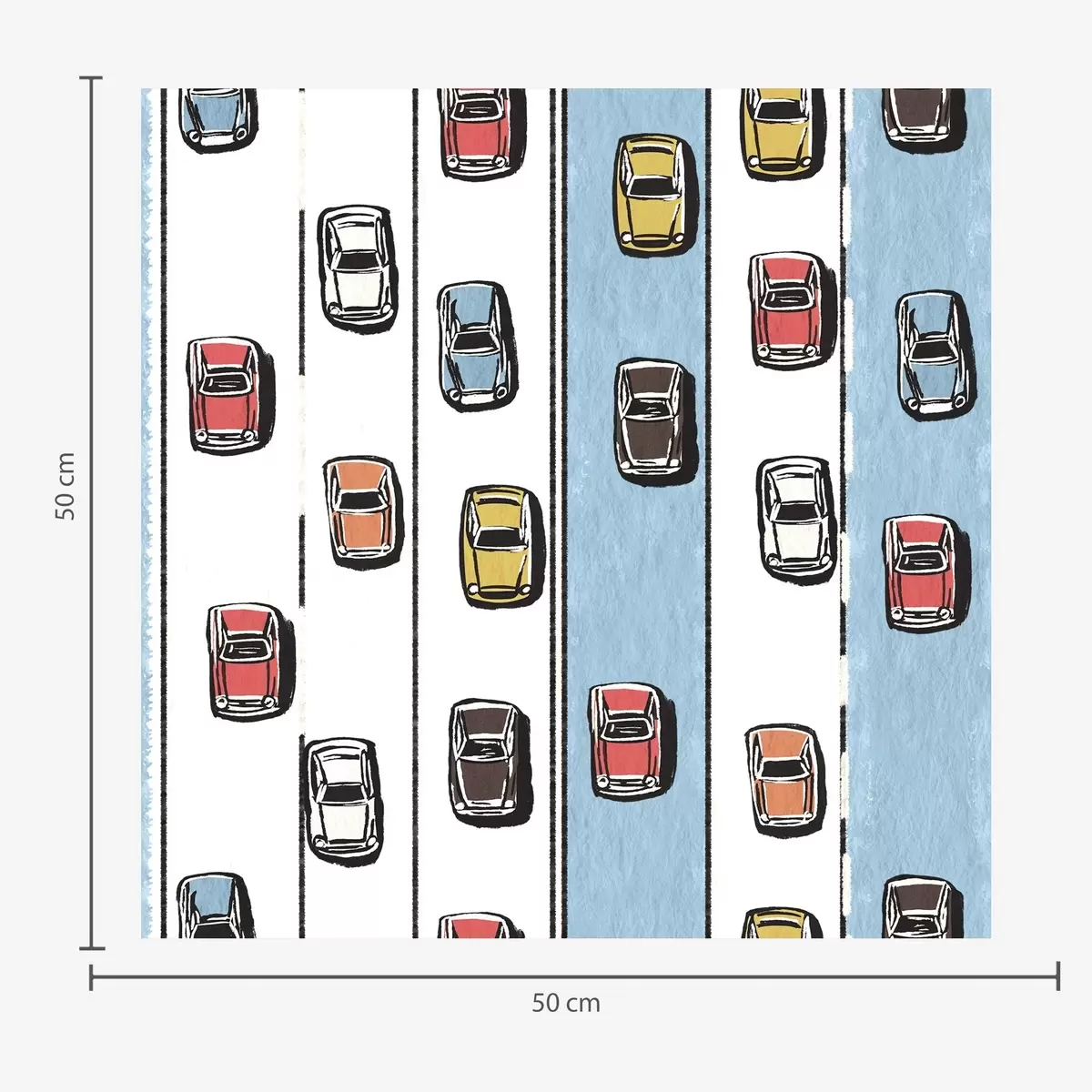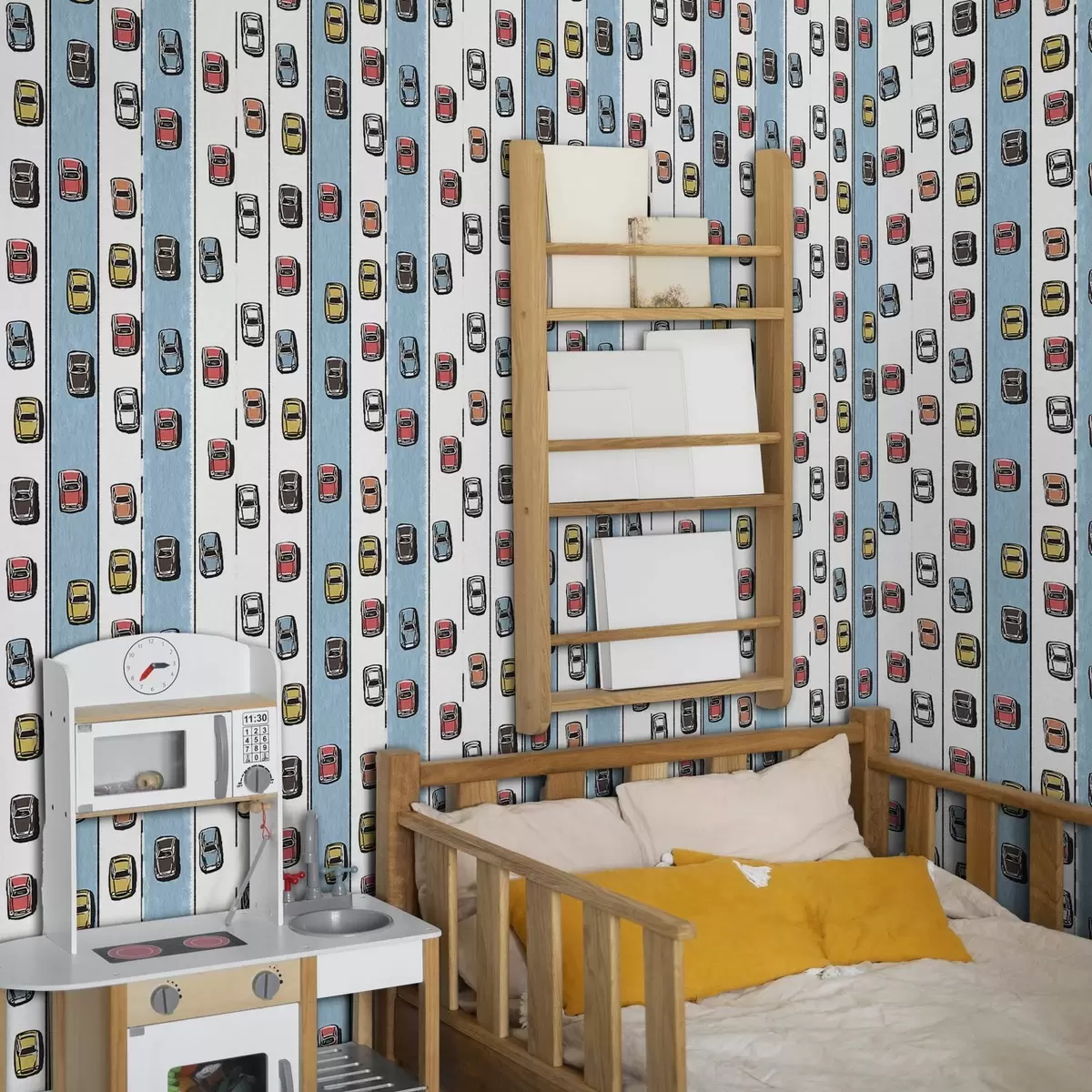 Tapet Retrobil på en vit och blå väg i stil med 60-talet Nr. a00118v2