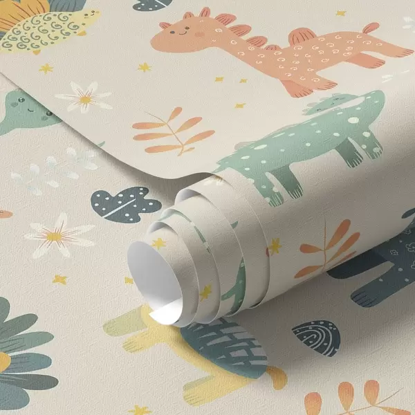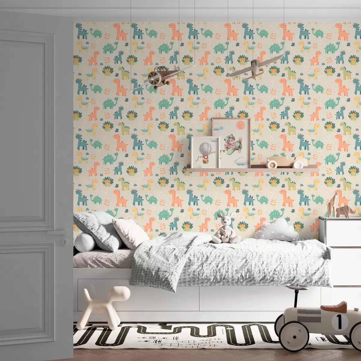 Tapet Barndinosaurier i pastellfärger mot en ljus bakgrund Nr. a00125