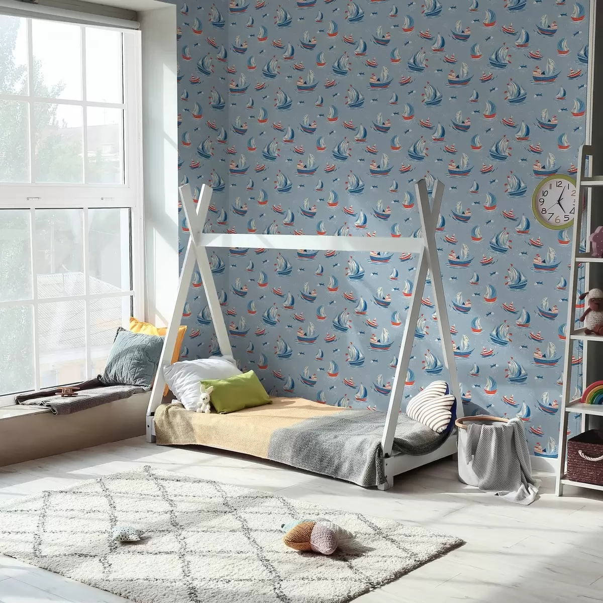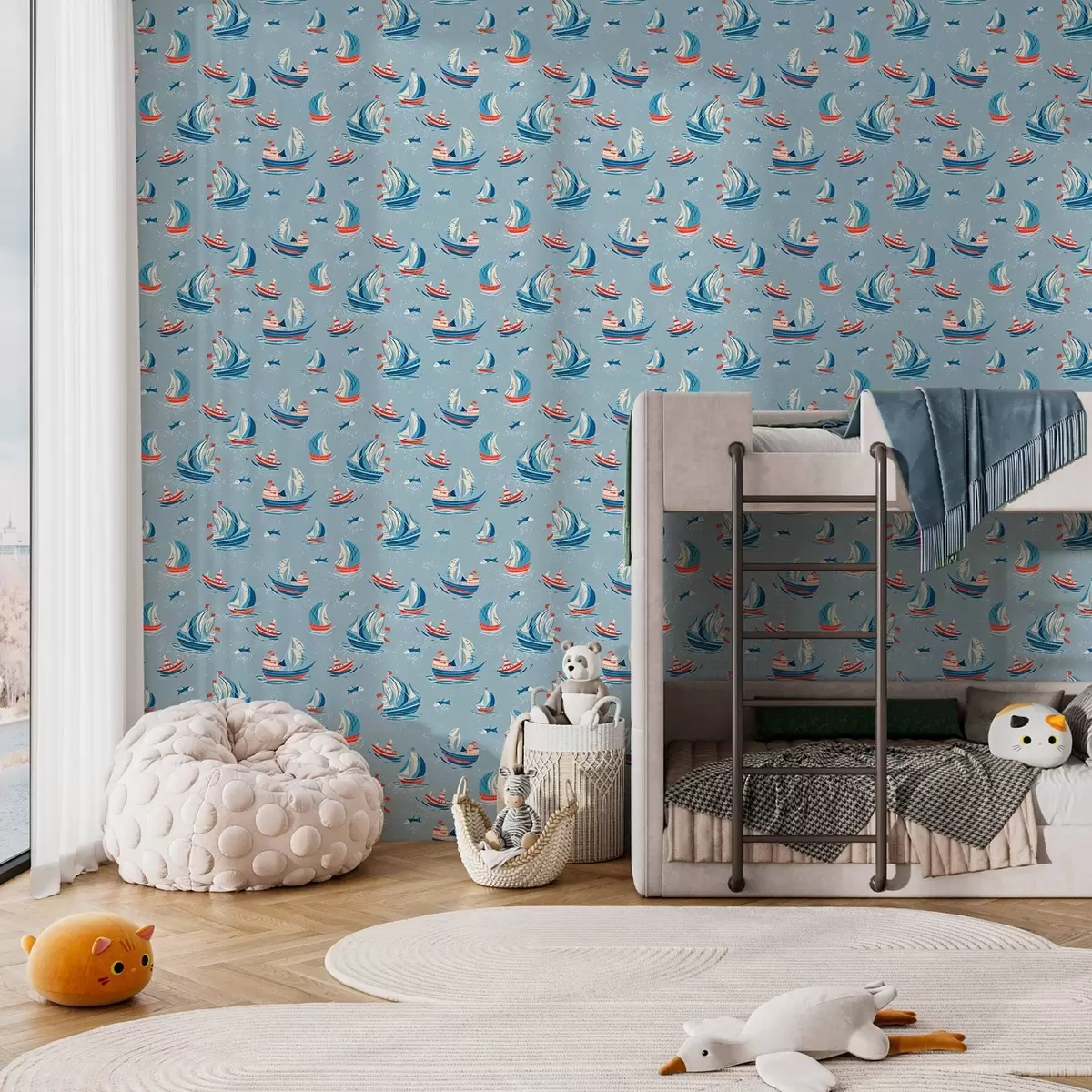 Tapet Fartyg på blå bakgrund Nr. a00126