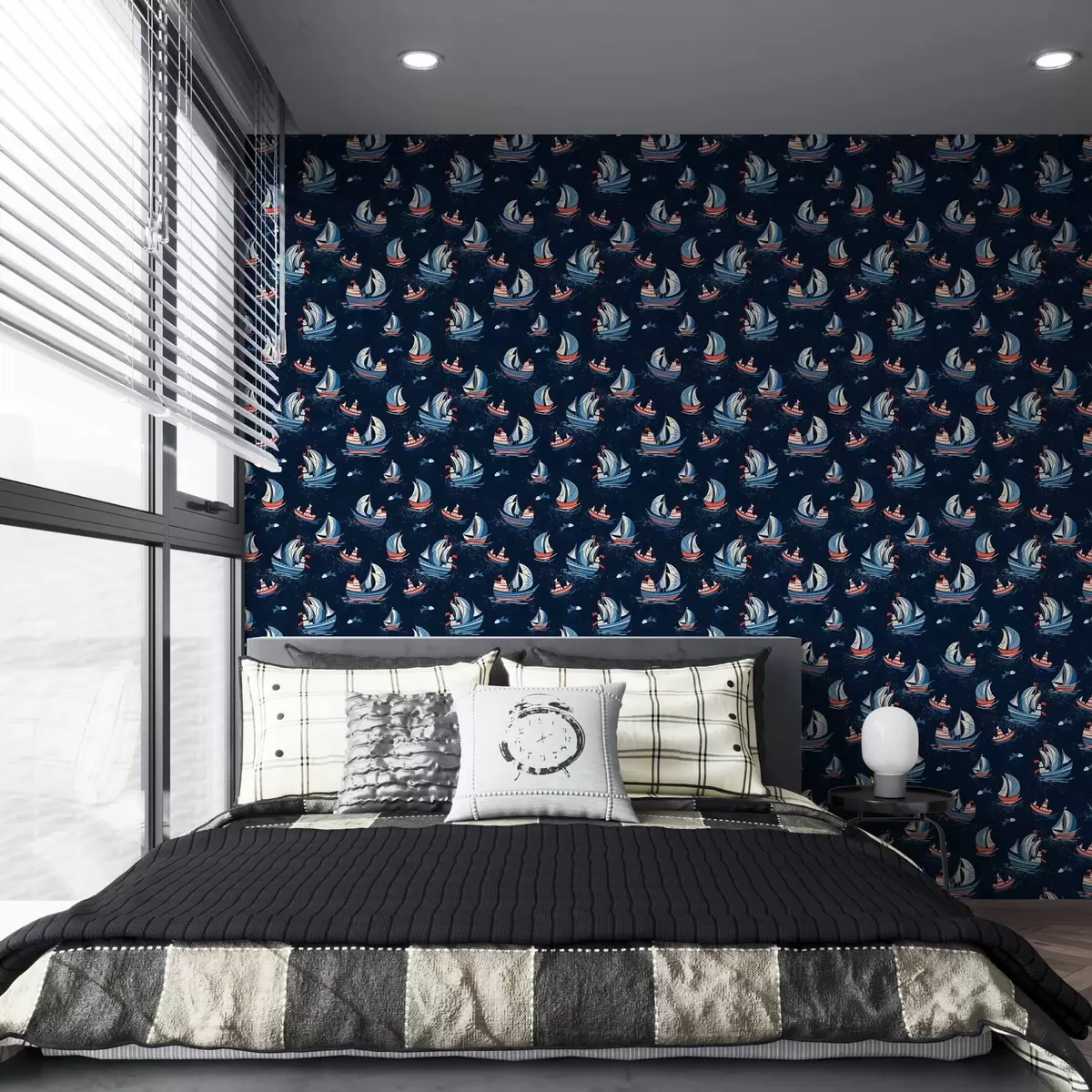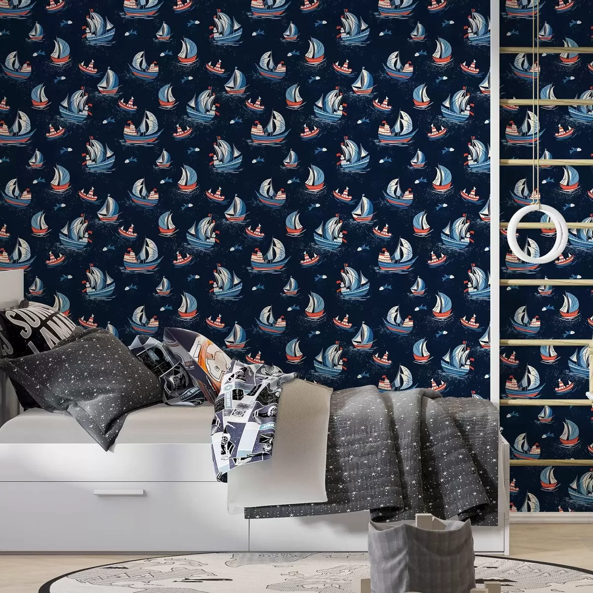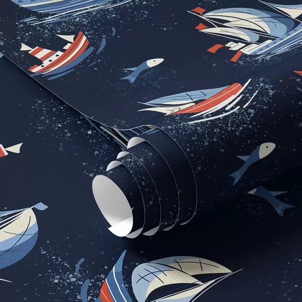 Tapet Fartyg på blå bakgrund Nr. a00126v1
