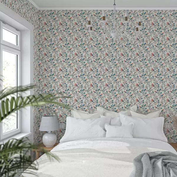 Tapet Fåglar på grenar och bär i varma färger Nr. a00128v1