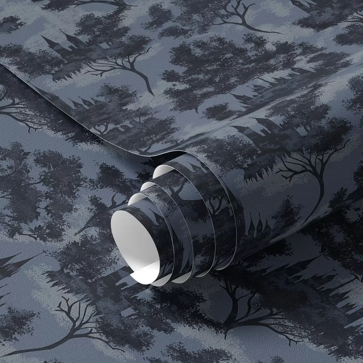 Tapet Gotiska slott bland träden i nattskogen Nr. a00130v1