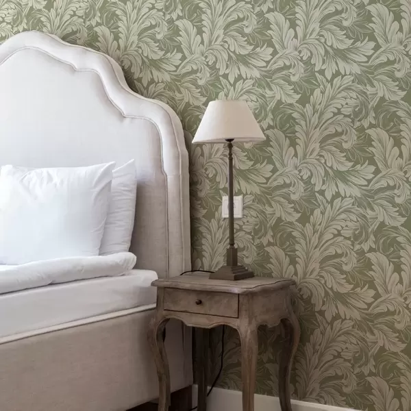 Tapet Barock med gräddfärgade blad på grön bakgrund Nr. a00135
