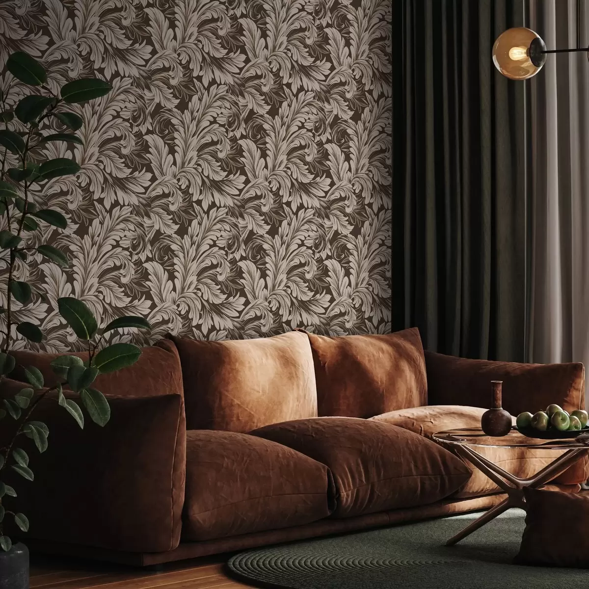 Tapet Barockmönster med löv på en mörk bakgrund Nr. a00135v5