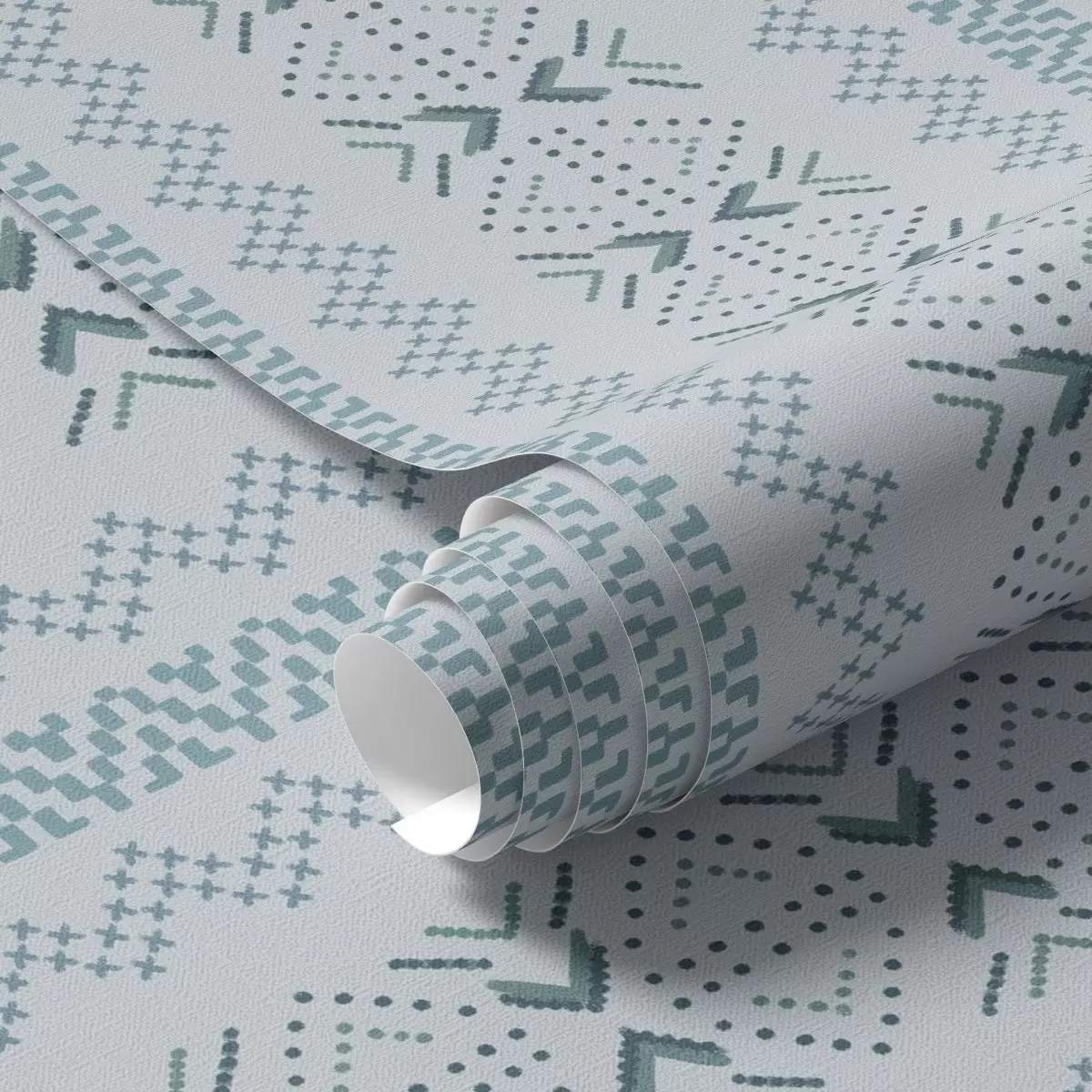 Tapet Geometri med ukrainskt broderi på blå bakgrund Nr. a00139