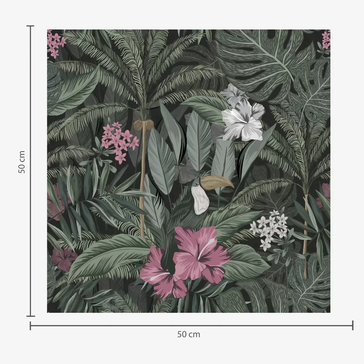 Tapet Tropiska blad och fågel på en mörk bakgrund Nr. a00140