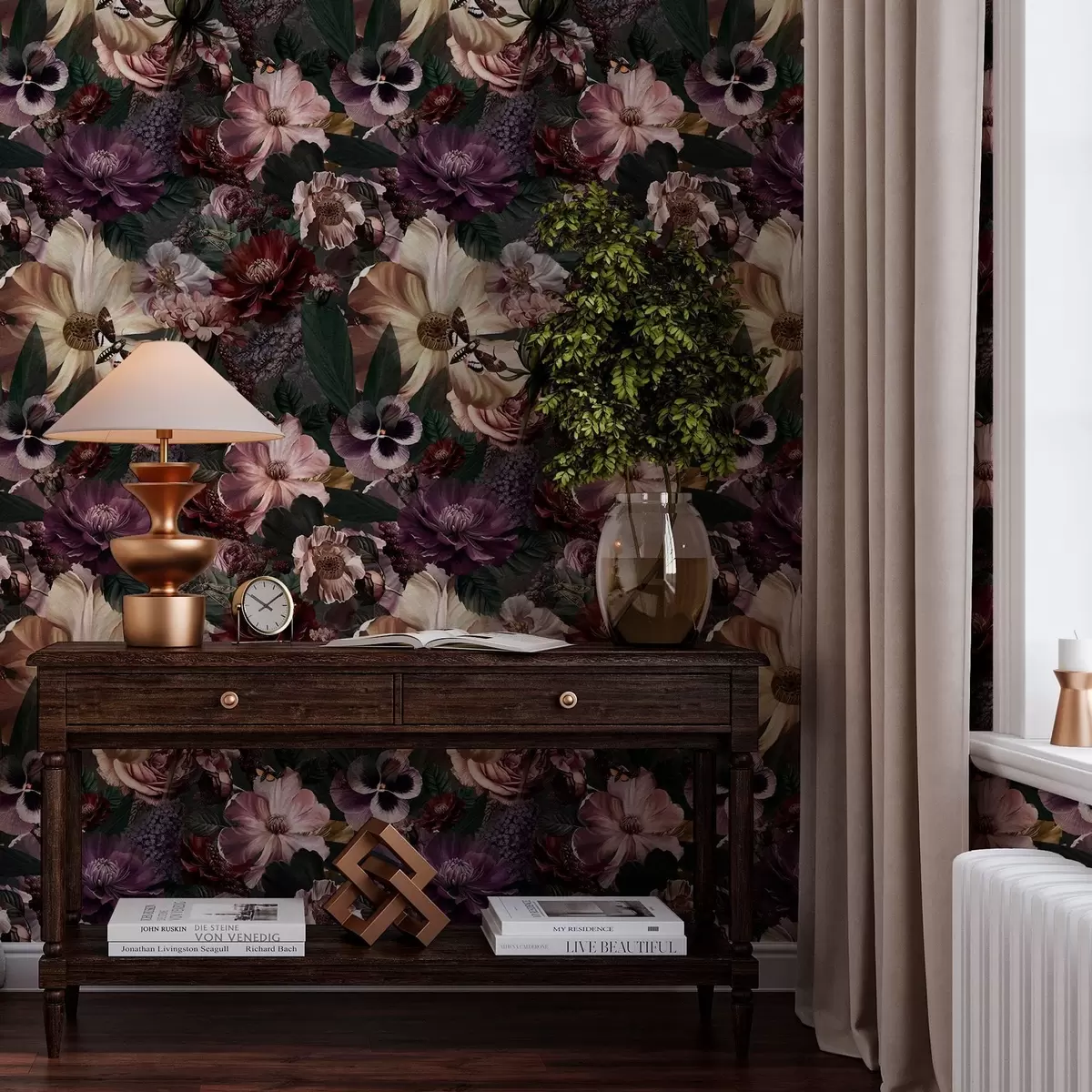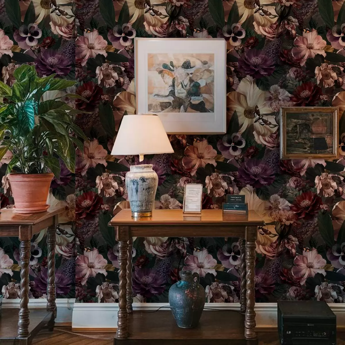 Tapet Konstblommigt tryck i mörka färger Nr. a00147
