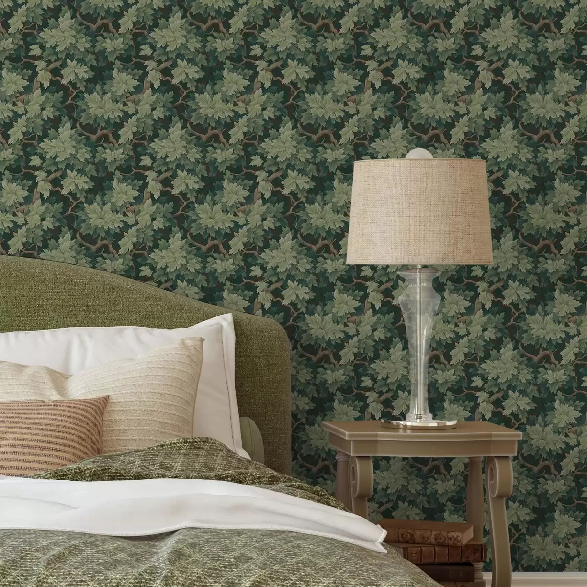 Tapet Ekblad på grön bakgrund Nr. a00151