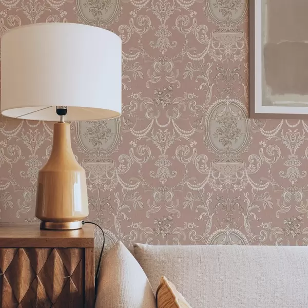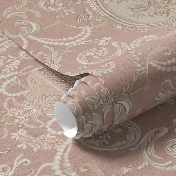 Tapet Barockornament med blommor på rosa bakgrund Nr. a00160
