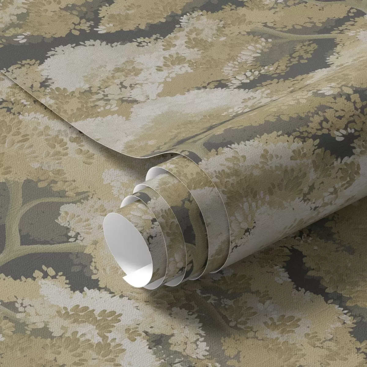 Tapet Mörkt skogsmönster med träd i varma färger Nr. a00170