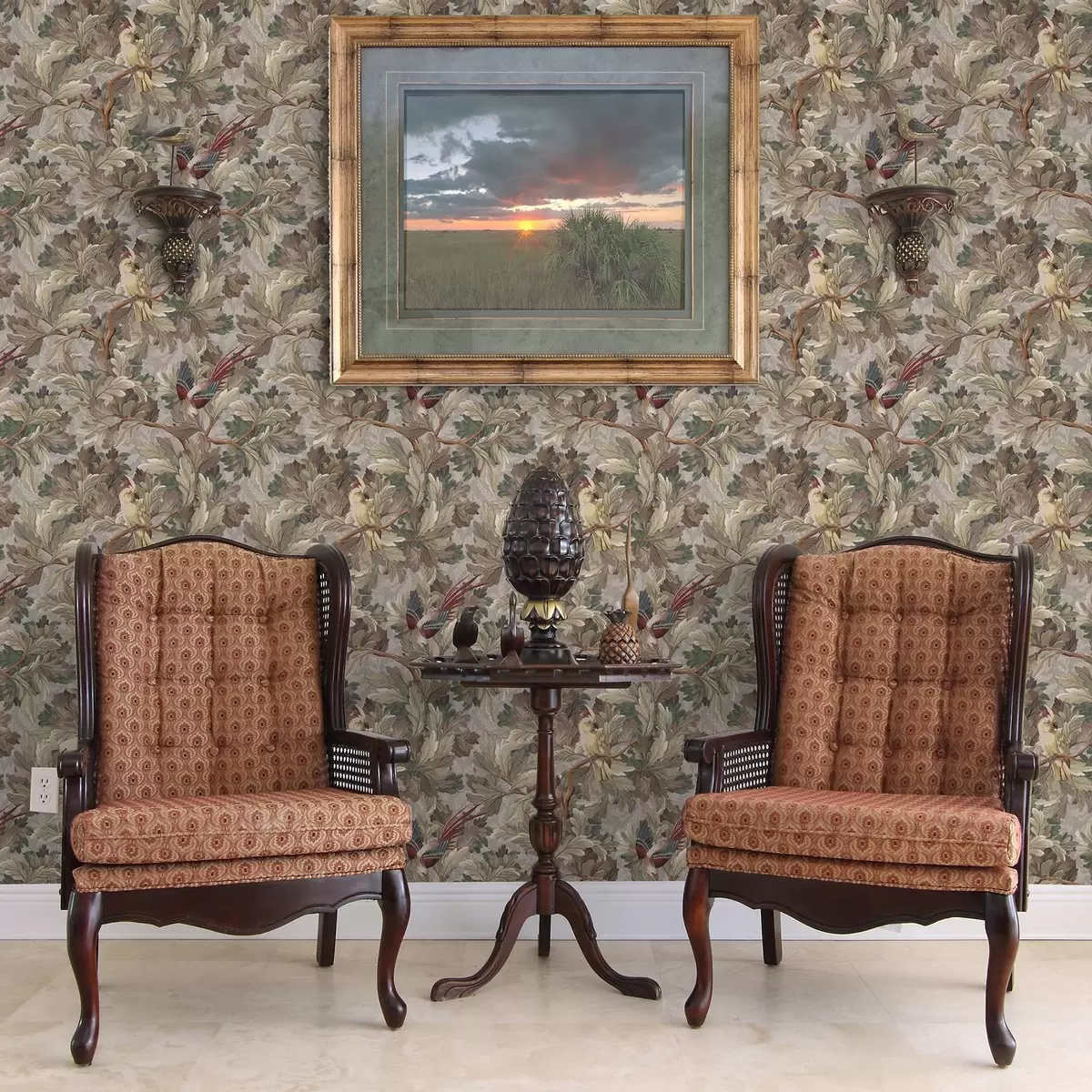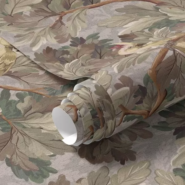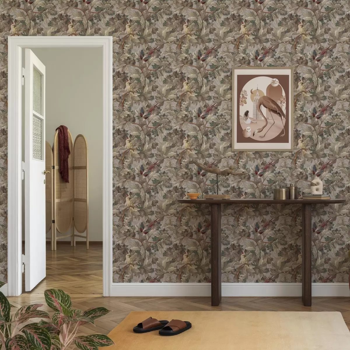 Tapet Fåglar på grenar i botanisk vintage-stil Nr. a00175