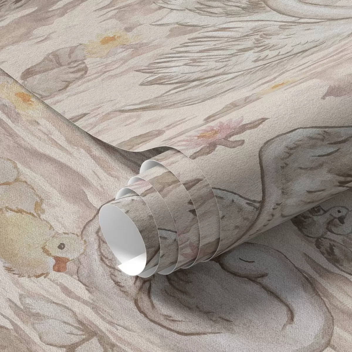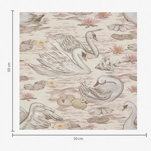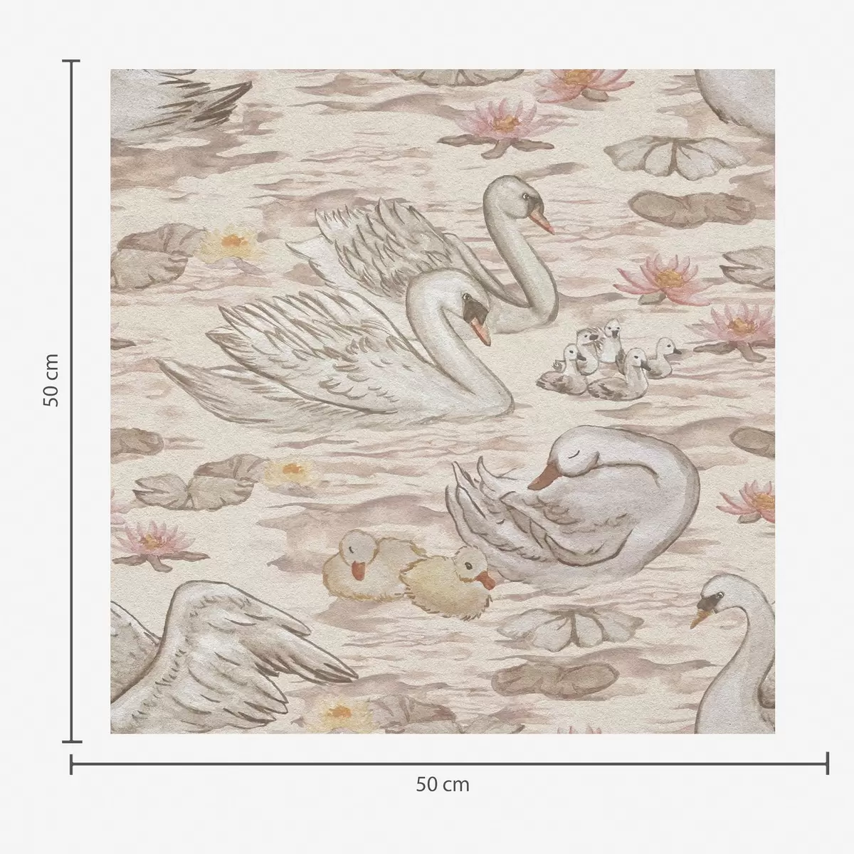 Tapet Svanar med ungar på rosa bakgrund med näckrosor Nr. a00176
