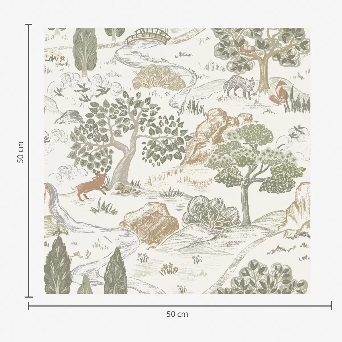 Tapet Sagokarta över naturen med djur och träd Nr. a00177