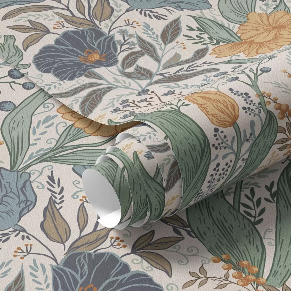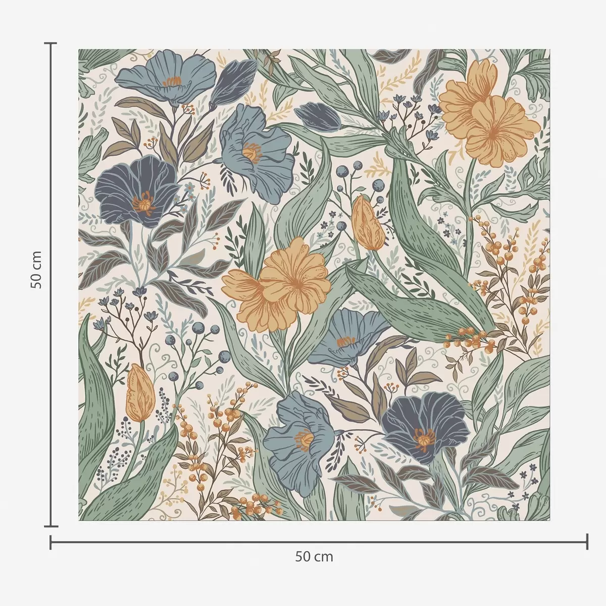 Tapet Handritad illustration av ängsblommor i varma färger Nr. a00180