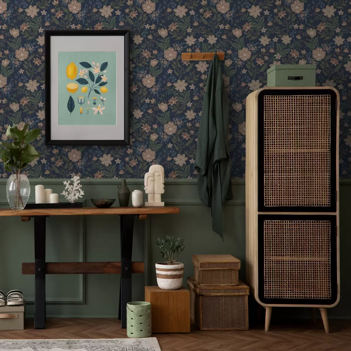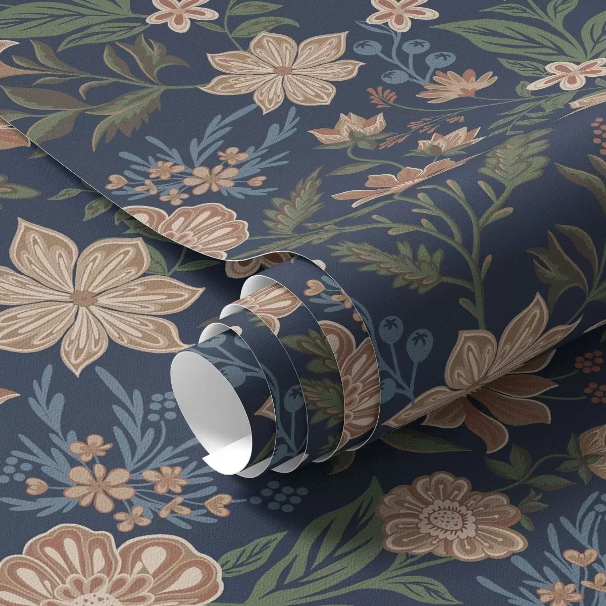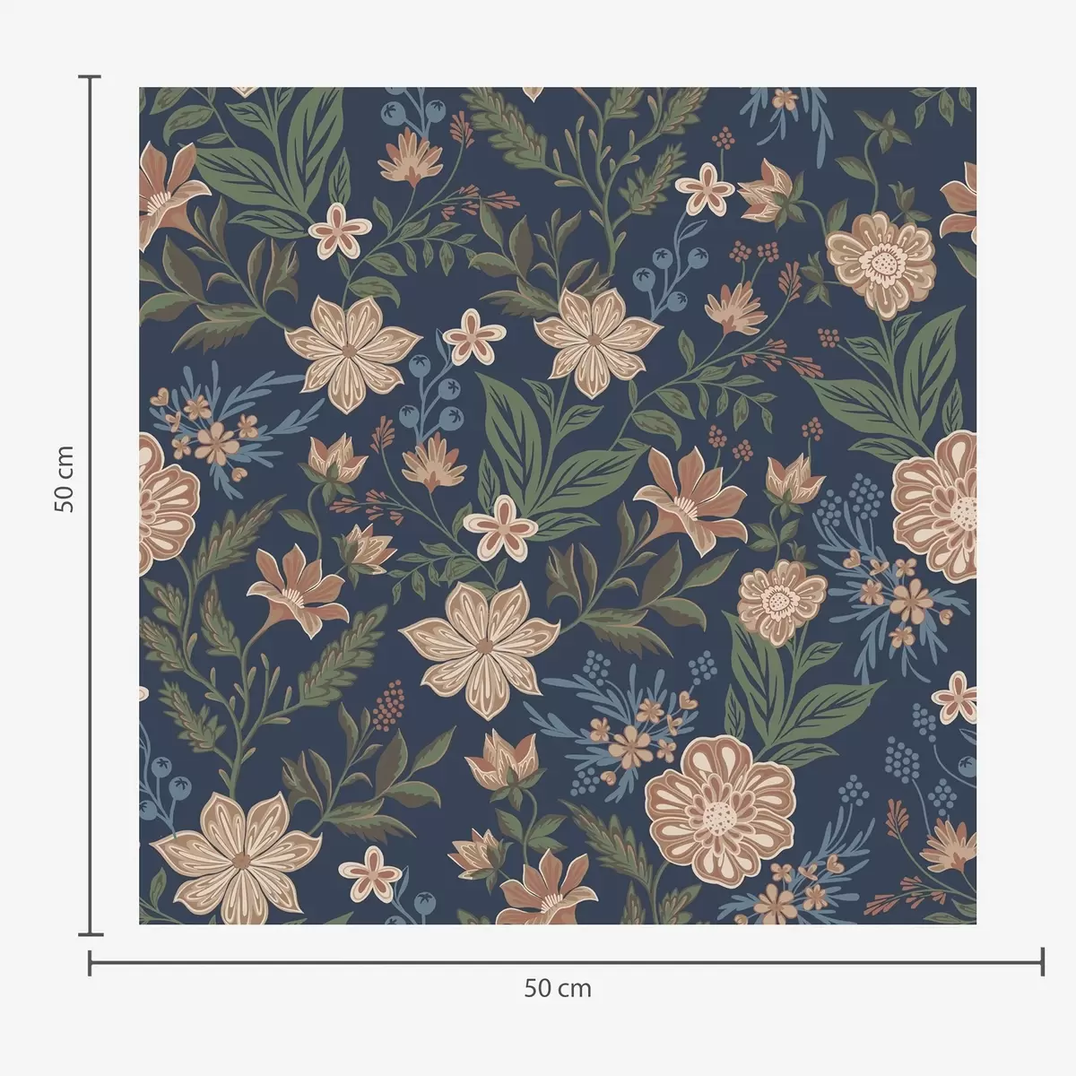 Tapet Mörkblått blommönster i vintagestil Nr. a00183
