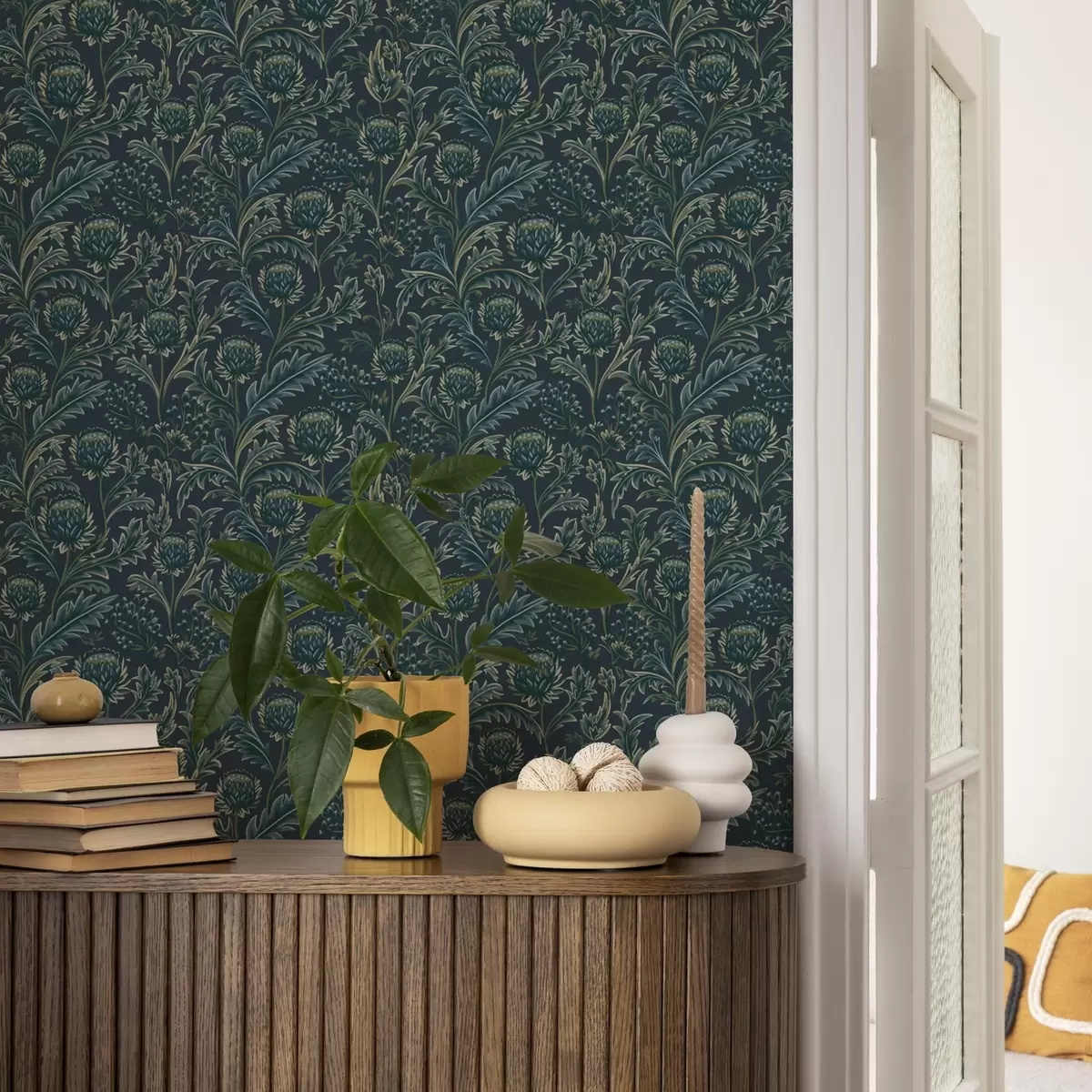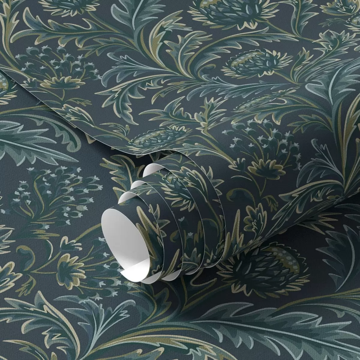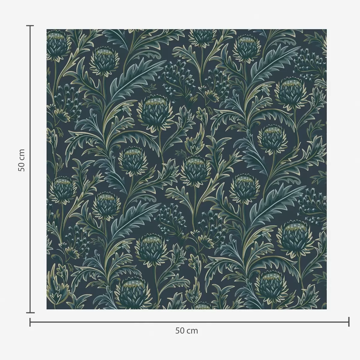 Tapet Mörkgrönt blommönster med kronärtskockor Nr. a00186