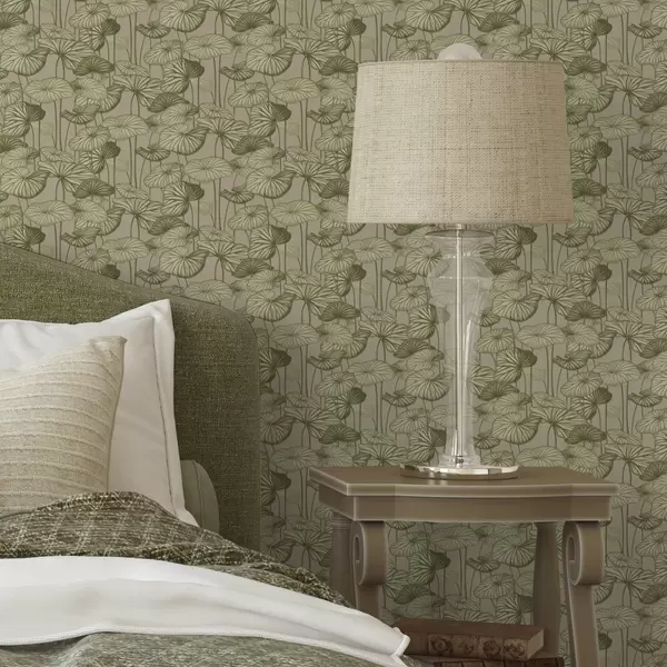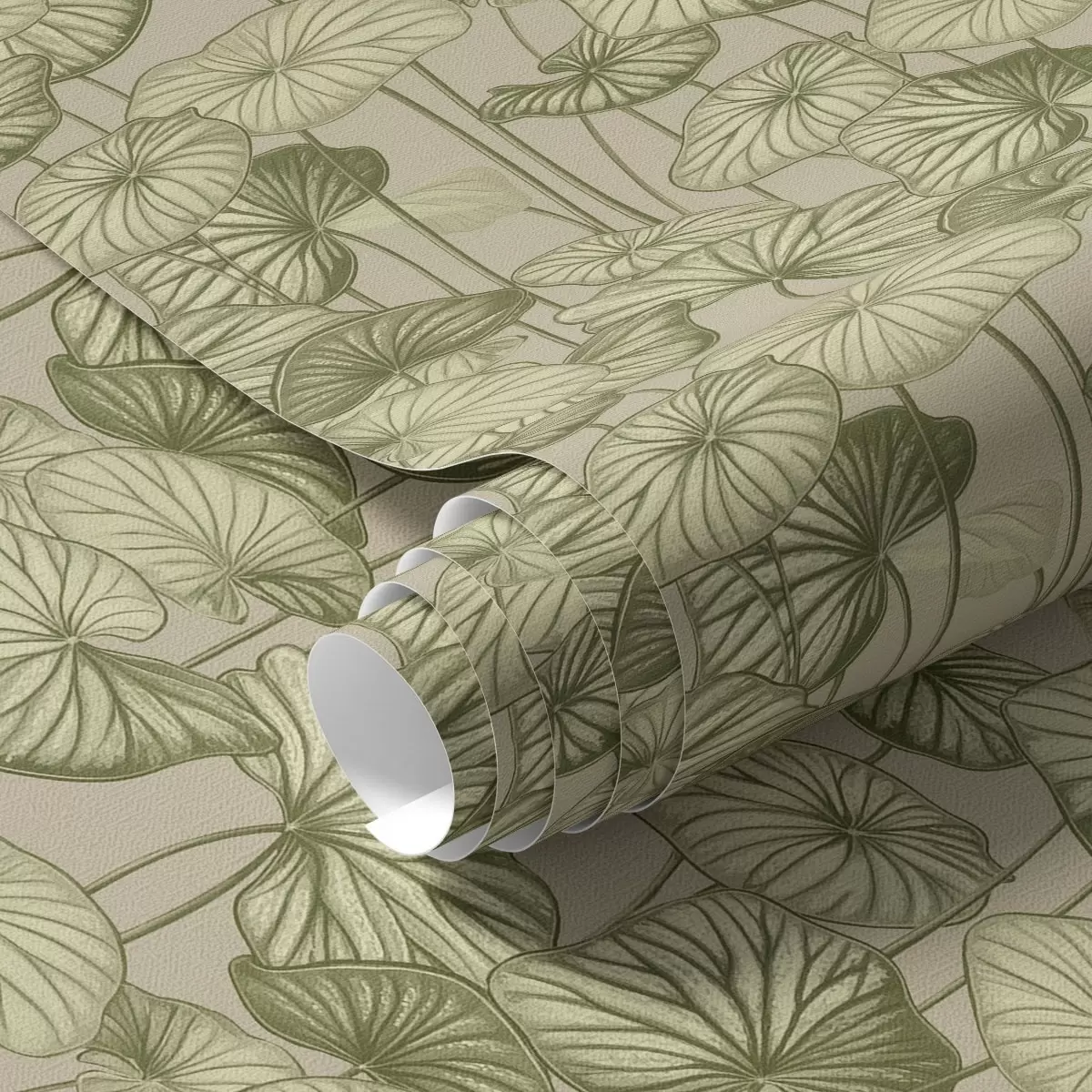 Tapet Grafiska lotusblad i retrostil på en beige bakgrund Nr. a00188
