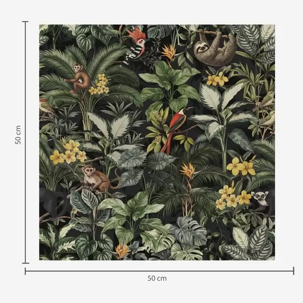 Tapet Tropisk djungel med apor, fåglar och täta bladverk Nr. a00191