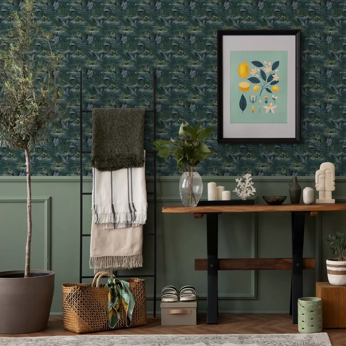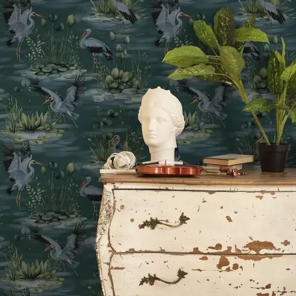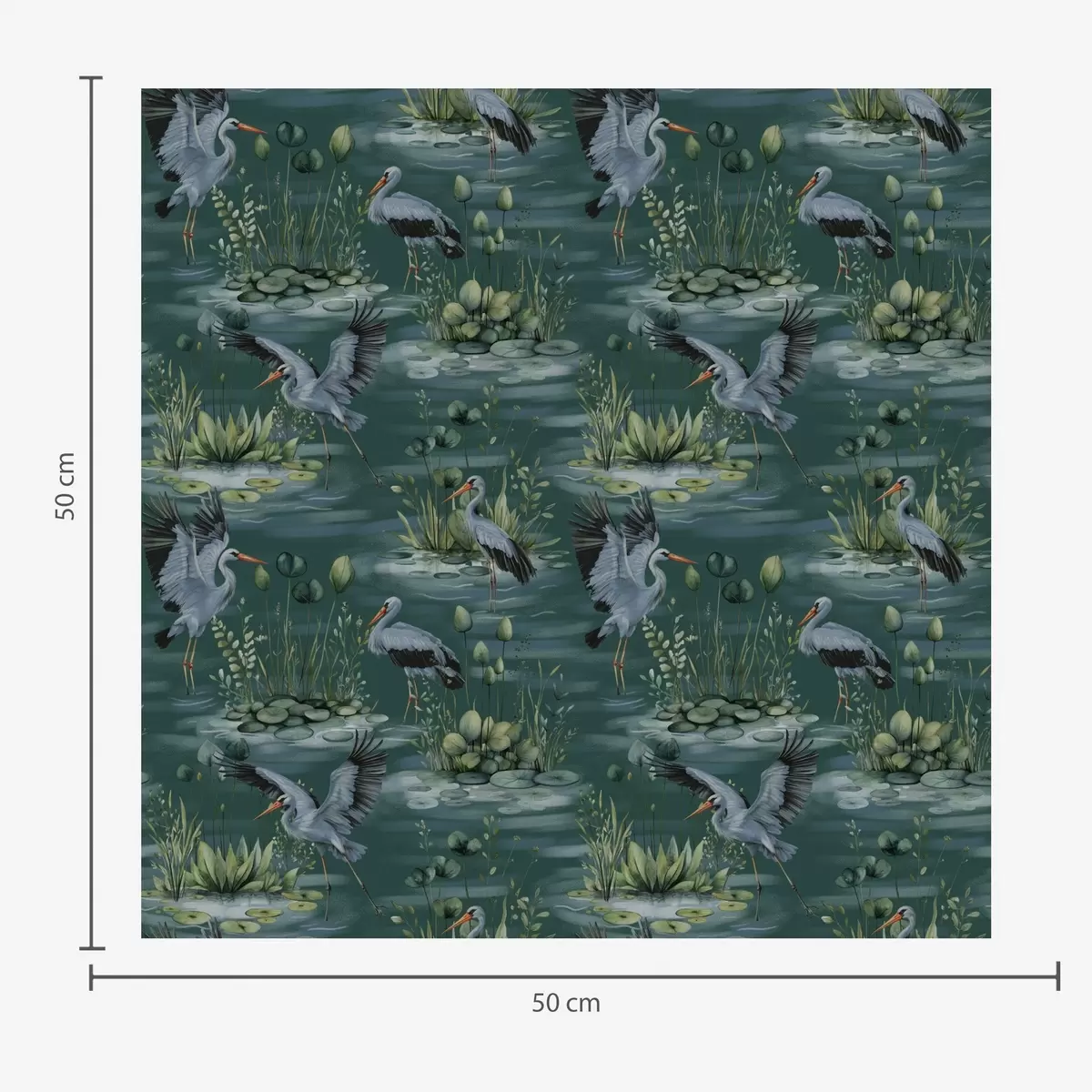 Tapet Scener med hägrar mot bakgrund av dammar och näckrosor Nr. a00202