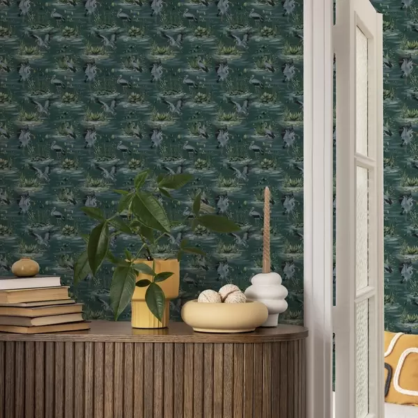 Tapet Scener med hägrar mot bakgrund av dammar och näckrosor Nr. a00202