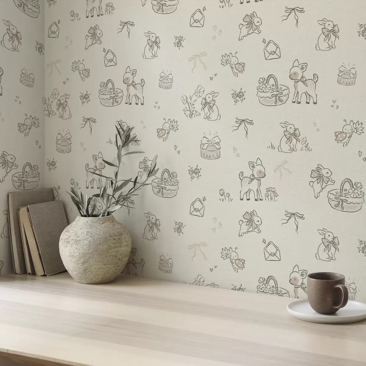 Tapet Söt skogsscen med rådjur, kaniner och bin Nr. a00215