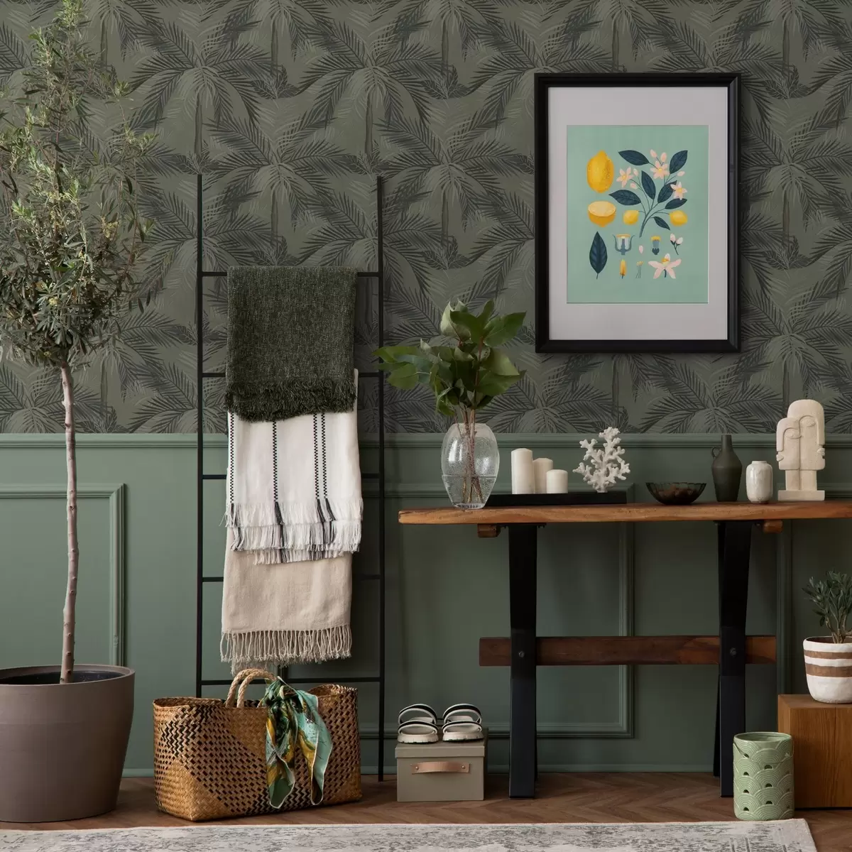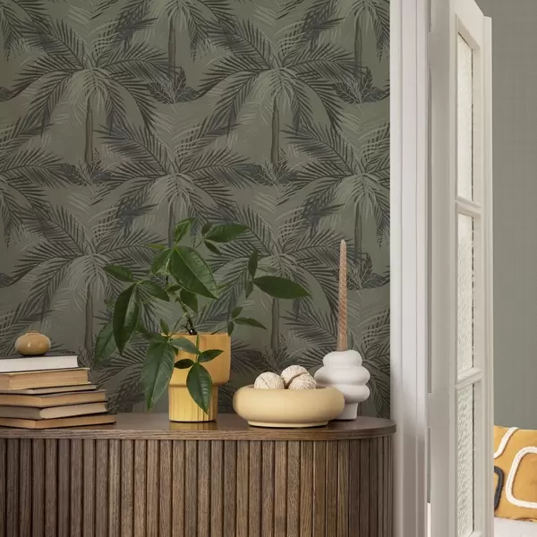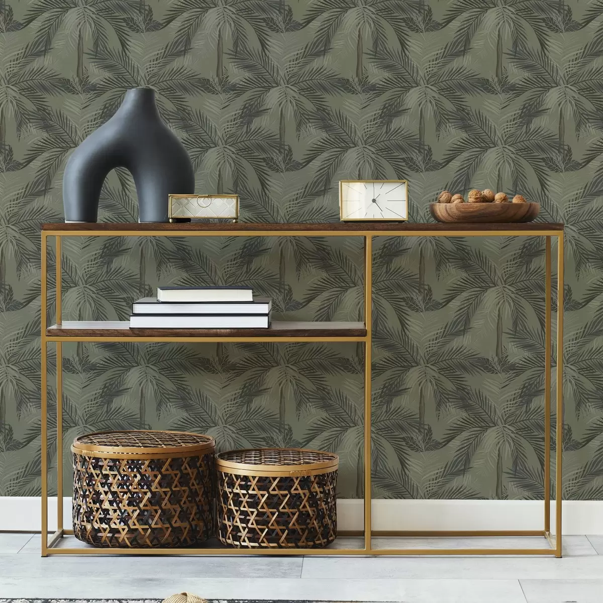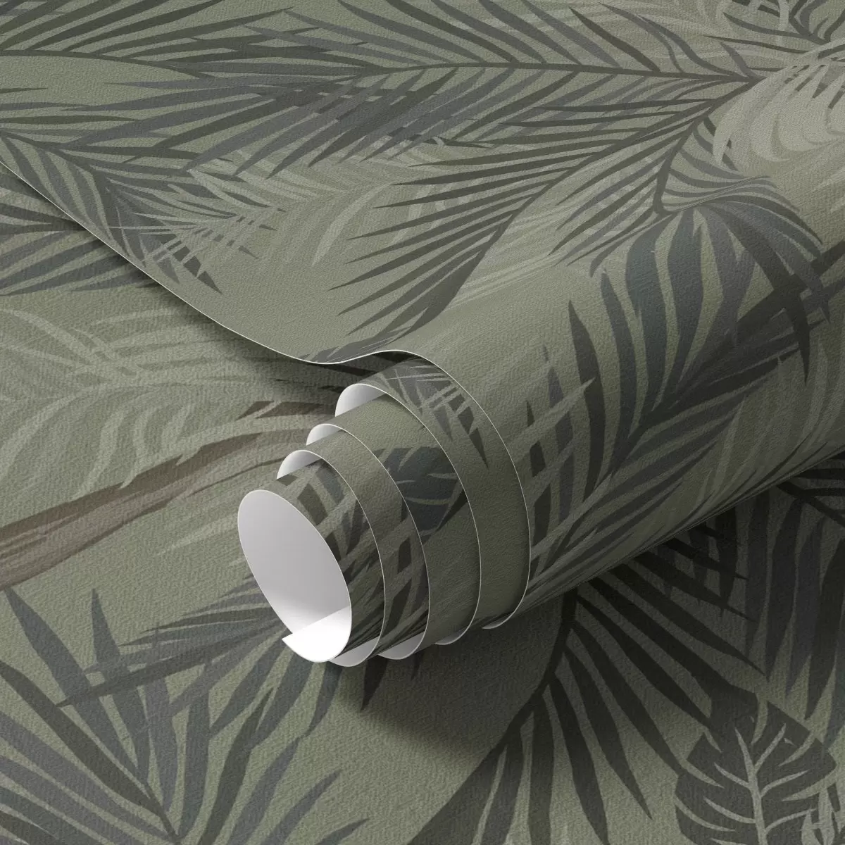 Tapet Palmblad på olivfärgad bakgrund, djungel, tropikerna Nr. a00217