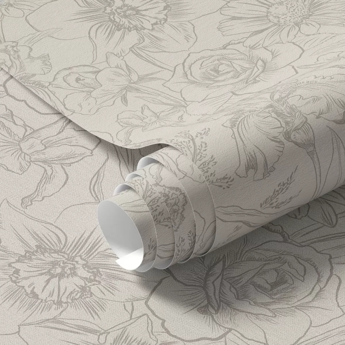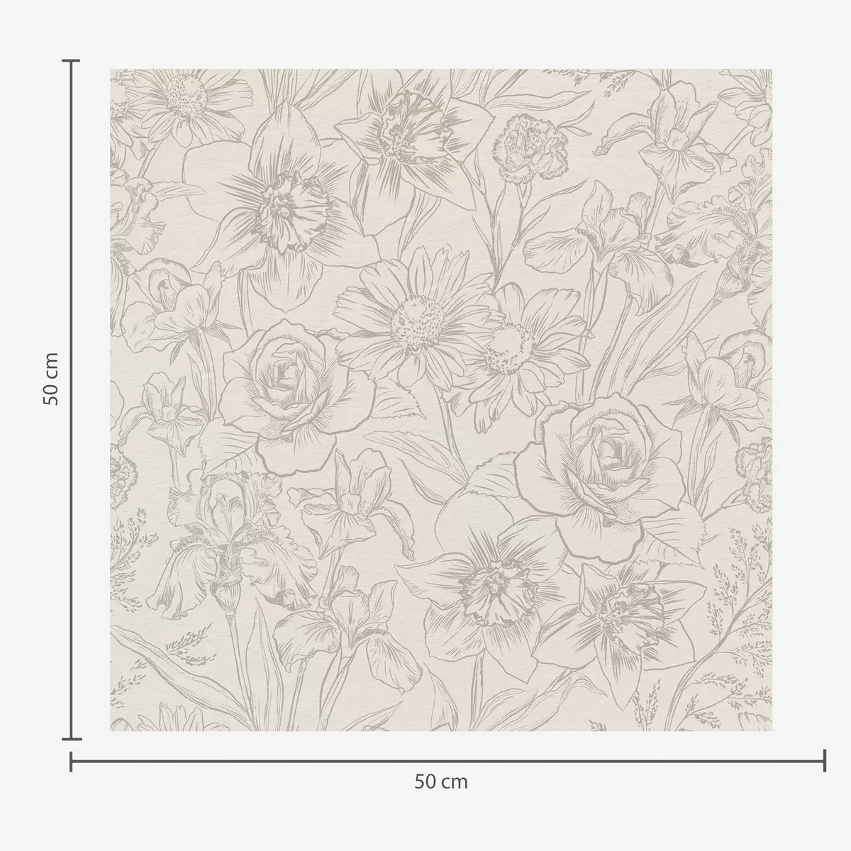Tapet Konturblommor på en krämfärgad bakgrund, fint blommönster Nr. a00218